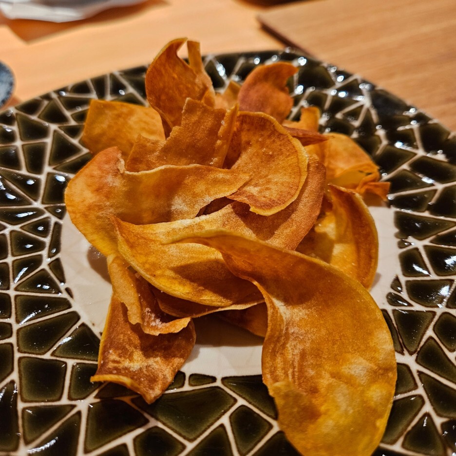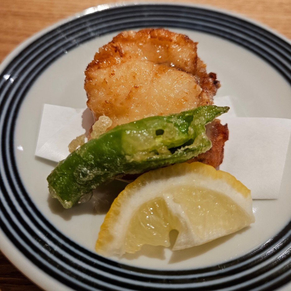 아귀살을 잘 튀겨서 오쿠라와 함께 주셨다. 튀김의 기름짐과 아귀의 부드러움이 잘 어울린다.