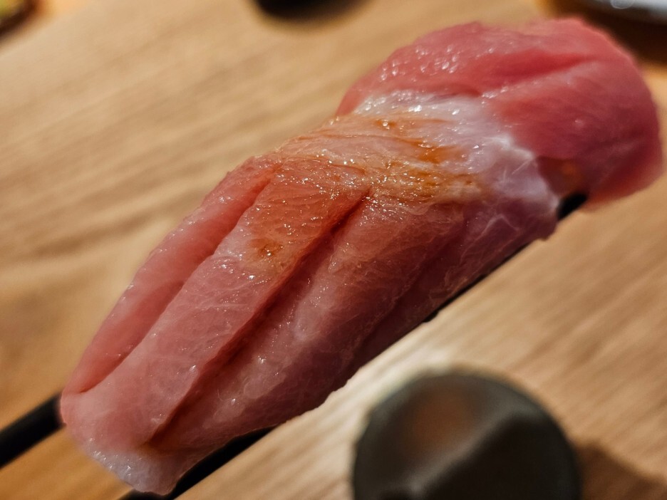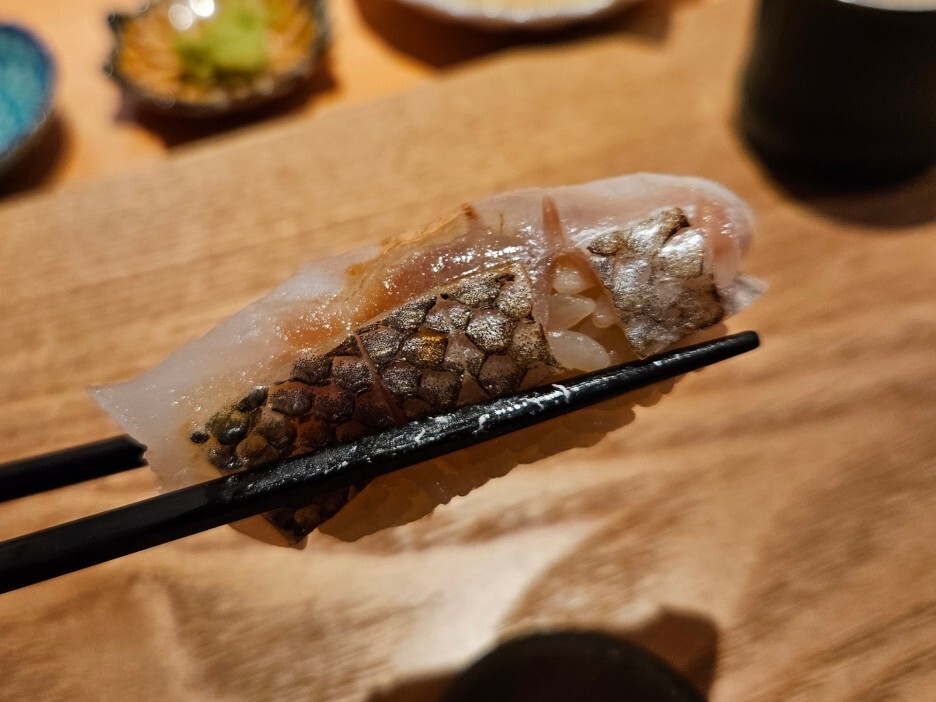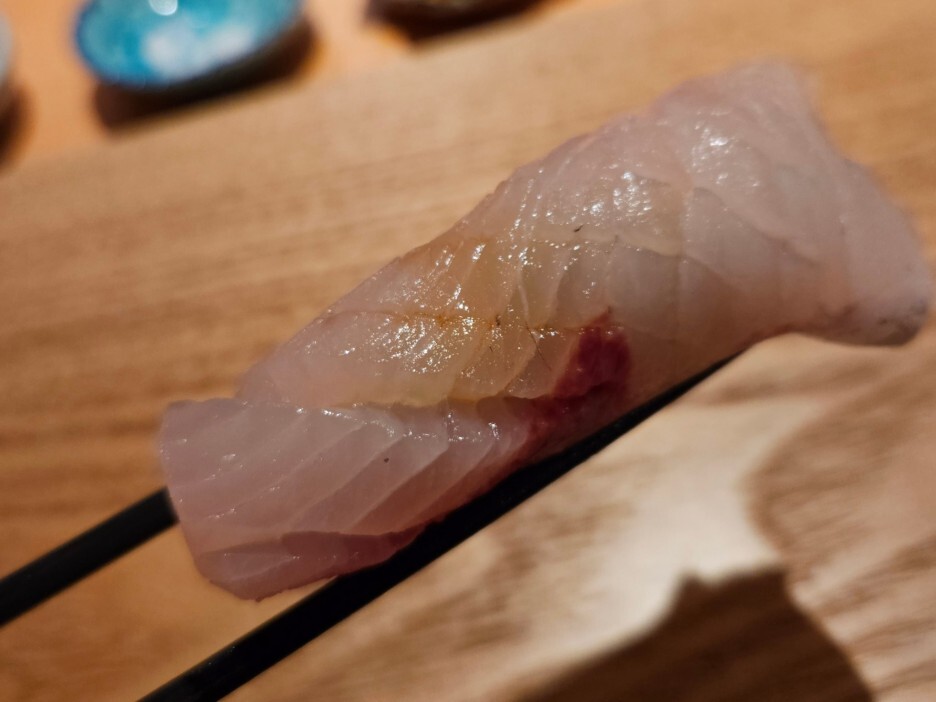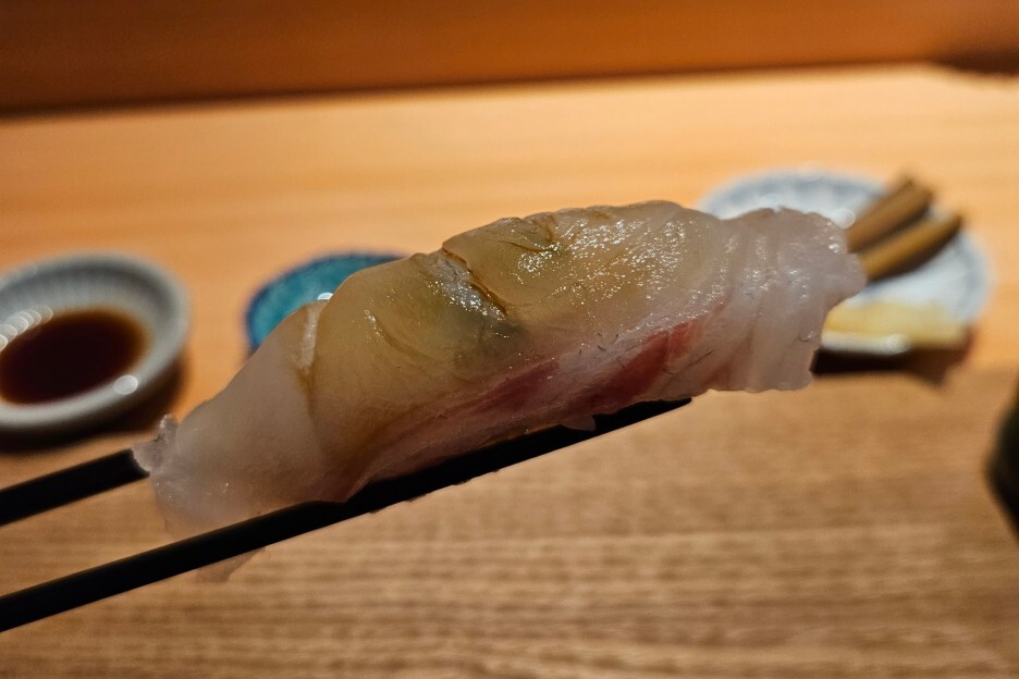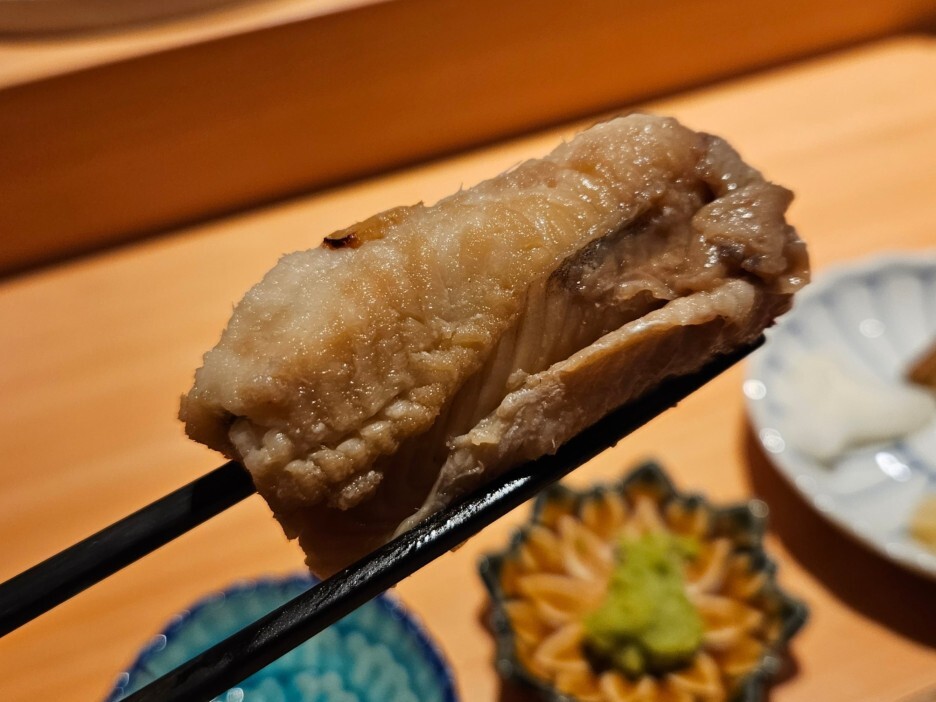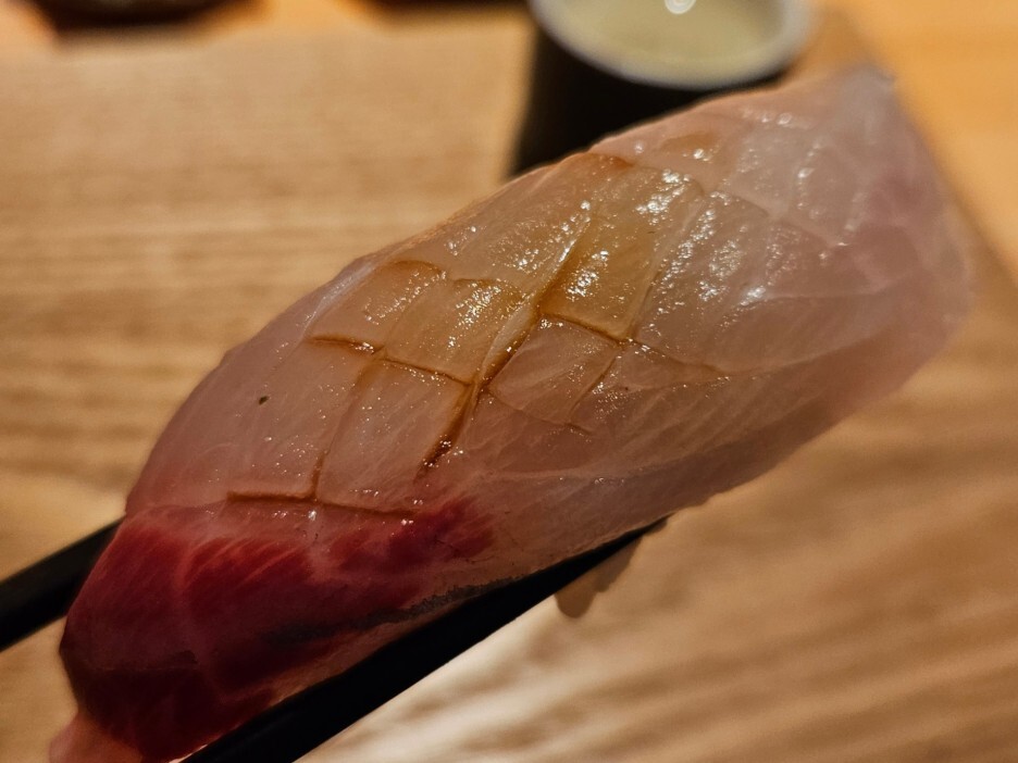 불질 아부리를 살짝 하여 기름기를 더 올린 농어다. 스시야에서 농어는 자주 접하지 못했는데, 맛있다는 것을 알게 되었다. 일본에서 먹었던 아부리 노도구로, 불질한 금태 스시가 생각날 정도였다.
