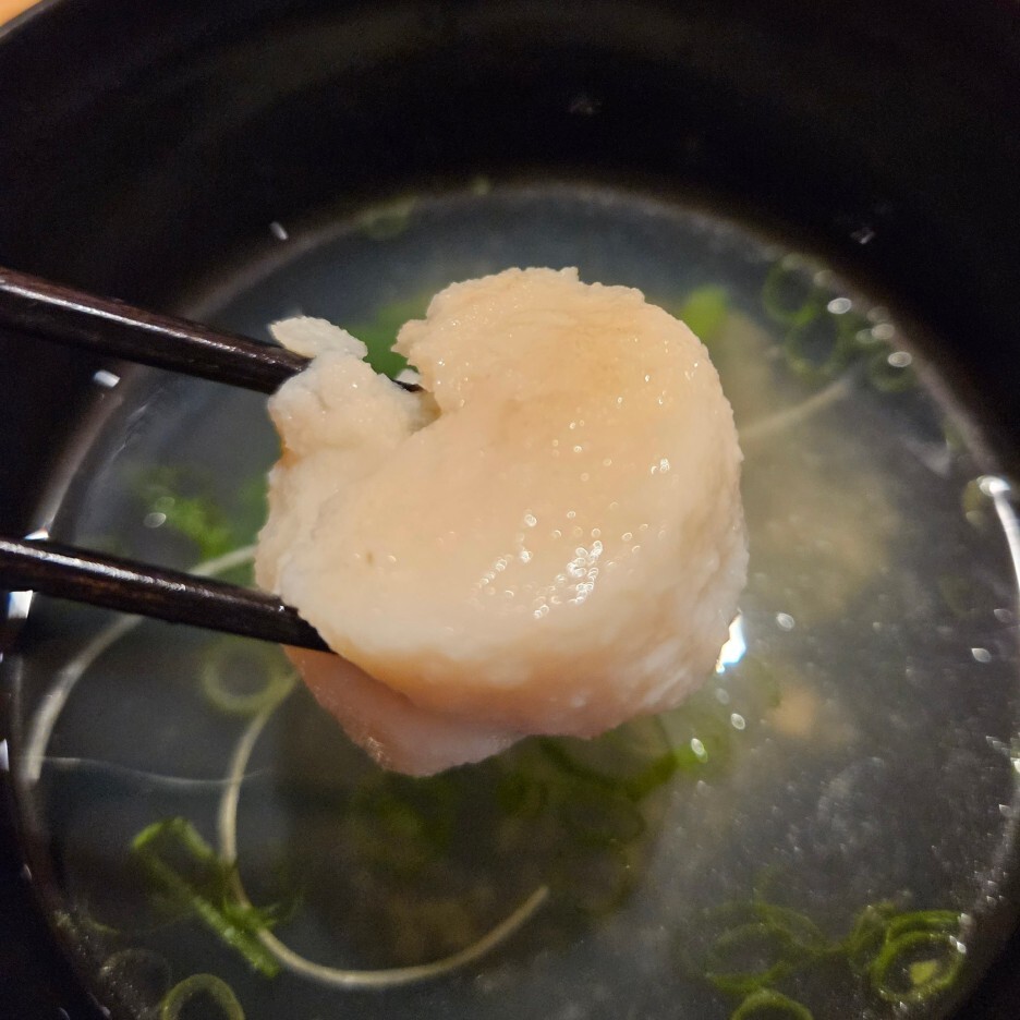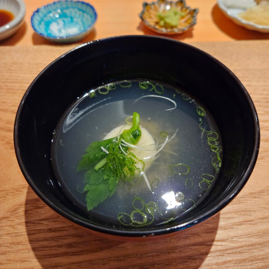 에비신조는 에비 海老 새우, 신조 真薯, 신 真은 으깬 어육, 조 薯는 참마를 의미하여, 으깬 어육에 참마를 섞어 완자 같은 형태로 만든 것을 의미한다. 즉, 새우와 참마를 갈아서 섞어 만든 완자이다. 시이모노 吸い物 는 글자 그대로 마시는 것. 일본 요리에서는 소금, 간장, 된장 등으로 맛을 낸 국물에 해산물이나 야채 등의 건더기를 넣어 끓인 것을 말한다. 은은하면서 감칠맛이 나는 국물은 훌륭했다. 한국식으로 치자면 아주 연한 재첩국 맛이다.