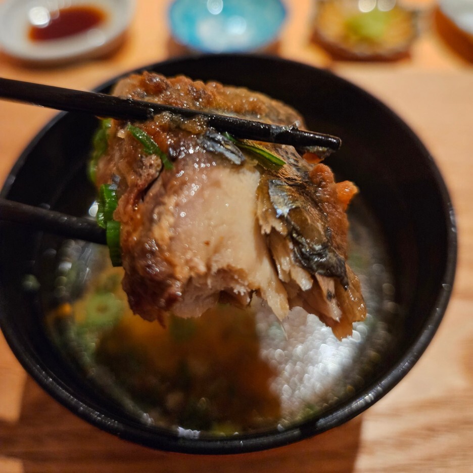 살짝 숙성된 고등어를 김에 말아 초밥 형태로 만든 것. 감사하게도 나에게 꽁다리를 주셨다. 이소베 磯辺 는 김을 이용한 요리를 일컫고, 마키 巻き는 감싸다라는 뜻. 김으로 감싸 만든 요리이다.