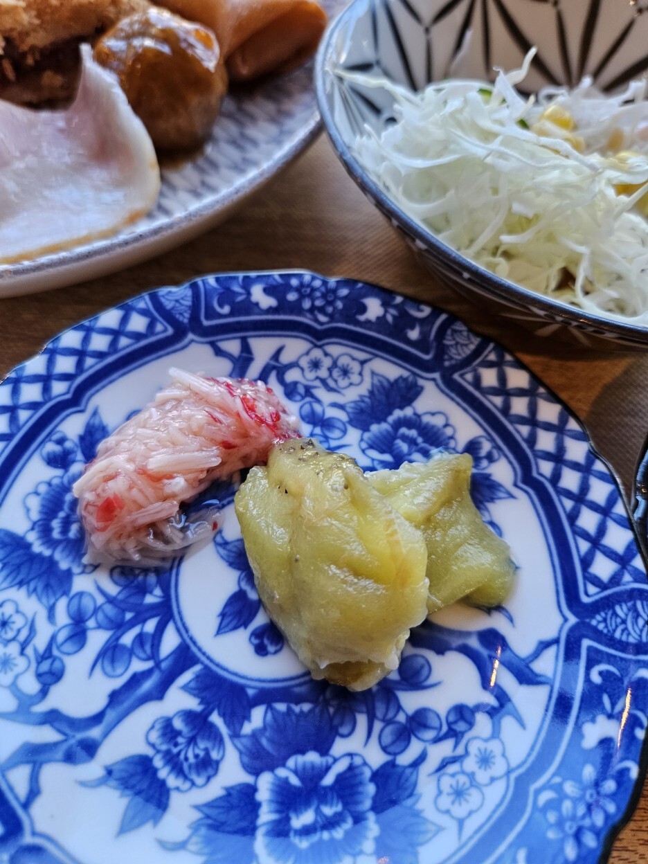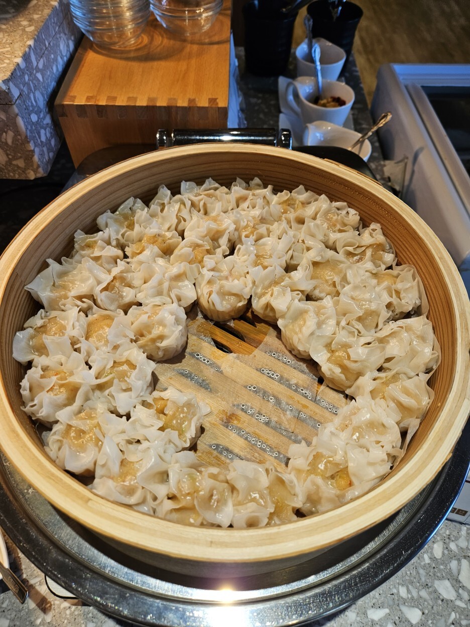 둘째 날 새롭게 나왔던 메인류의 음식들은 해산물 슈마이. 그리고 오징어 멘치 카츠와 춘권.