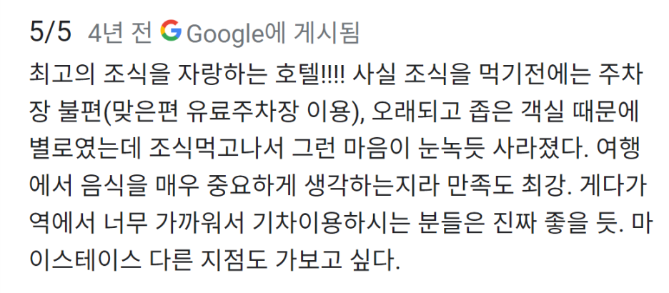 이번 일본 종단 여행은 총 23일의 일정이었지만, 가급적 호텔 조식을 예약하지 않았다. 일본 여행에서 먹을 것이 많으리라 생각했기에 배를 덜 채우기 위함이었다. 하지만, 호텔 예약을 위해 확인하던 중 발견한 구글맵의 한 리뷰는 이 호텔의 조식을 예약할 수밖에 없게 만들었다.