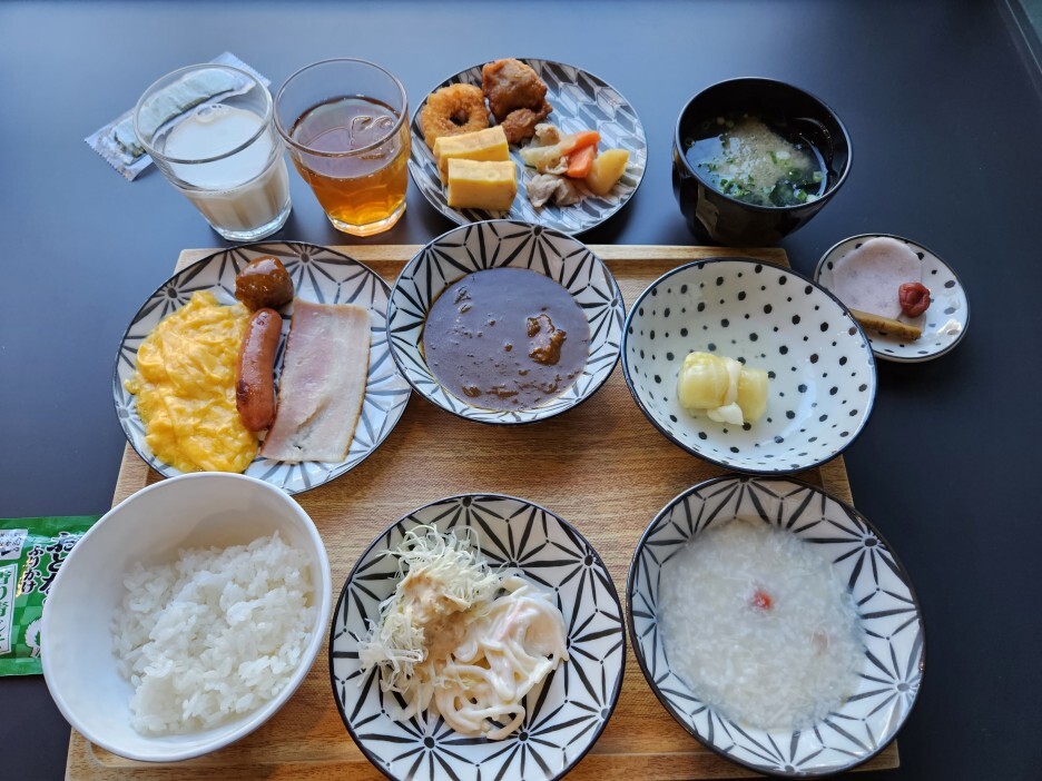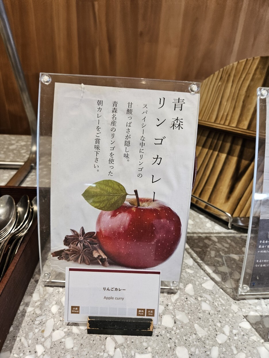 가짓수가 어마어마한 조식이었다. 거기다가 음식 하나하나가 다 퀄리티가 있다. 역시나 카레는 맛있었다. 그리고 매일 바뀌는 메인의 튀김류는 튀김 마니아인 나에게 아주 만족스러웠다. 또한, 가리비 죽이나 사과 주스 등 다양한 유명 농수산물을 이용한 음식들은 아오모리 여행은 온 사람에게 꽤 높은 만족감을 줄 수 있는 요리들이었다. 다양한 디저트류도 좋았고 특히 아이스크림이 있다는 것이 만족도를 크게 높여준다. 일본식 조식의 스탠더드가 바로 여기가 아닐까 한다.