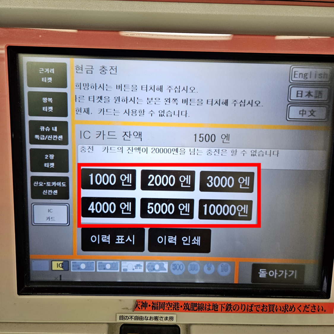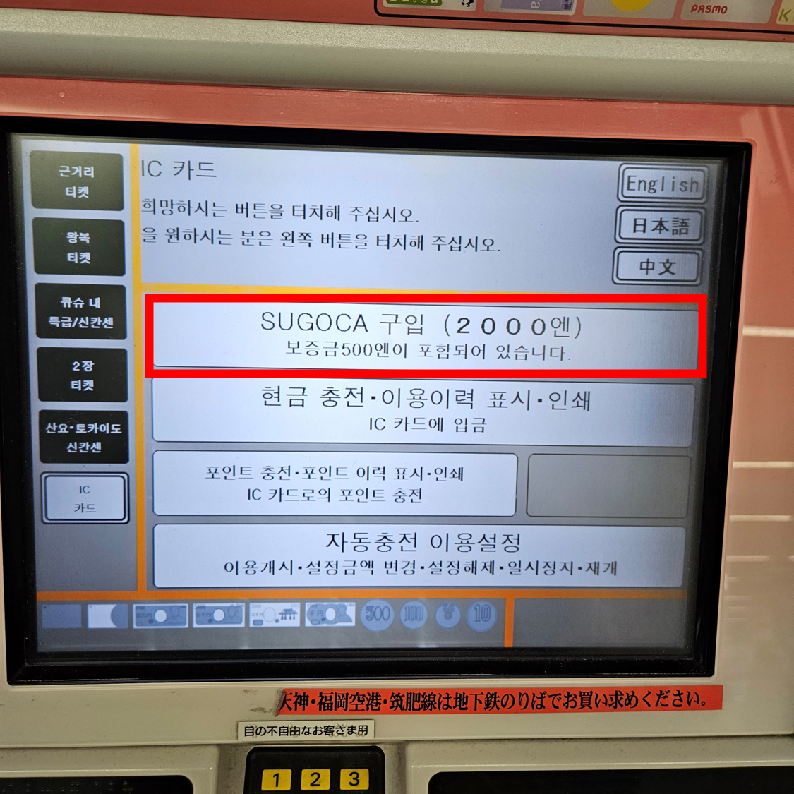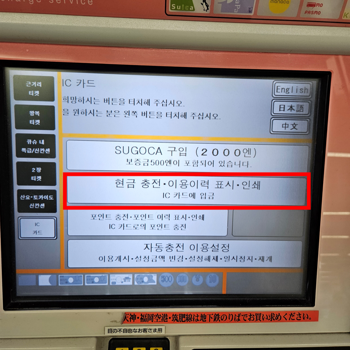 하카타역에서 셀프로 IC카드 구입하기