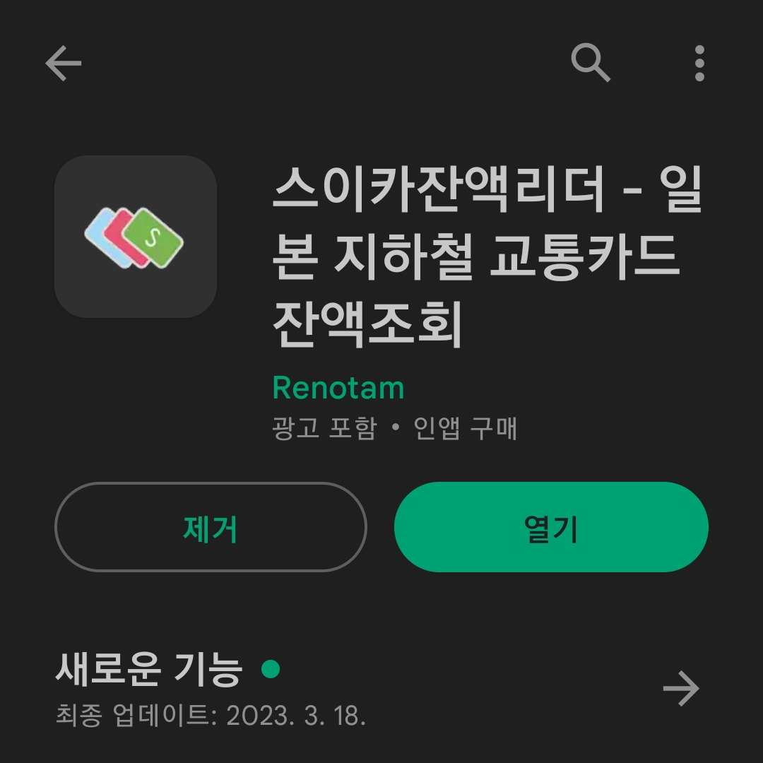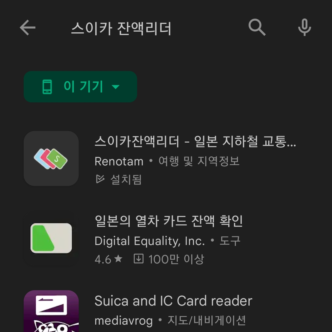 추천하는 앱은 "스이카 잔액 리더" 이다.