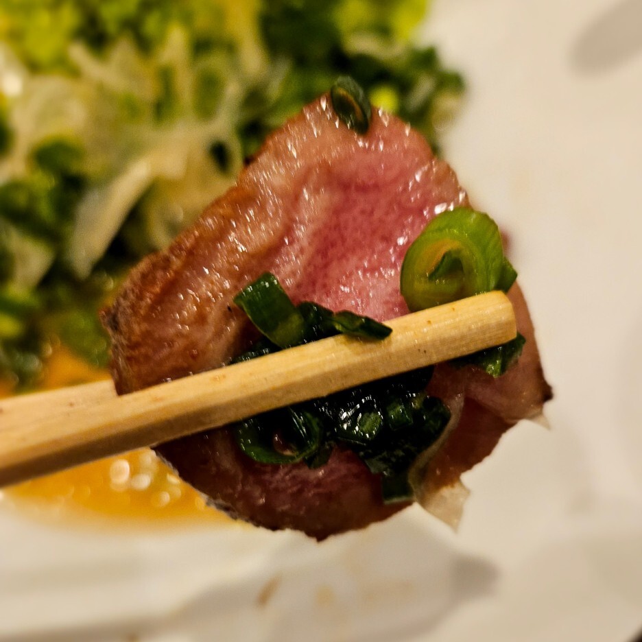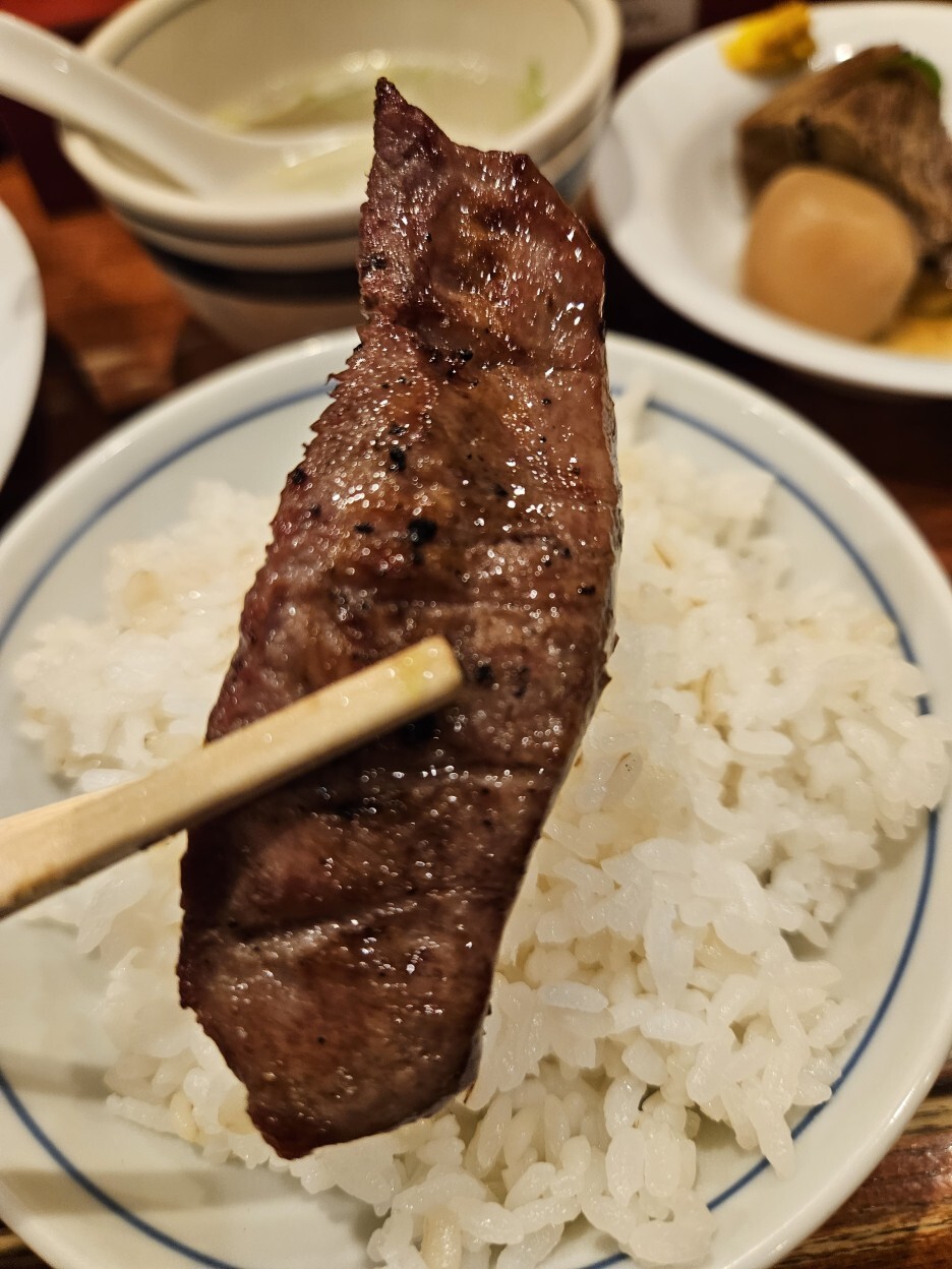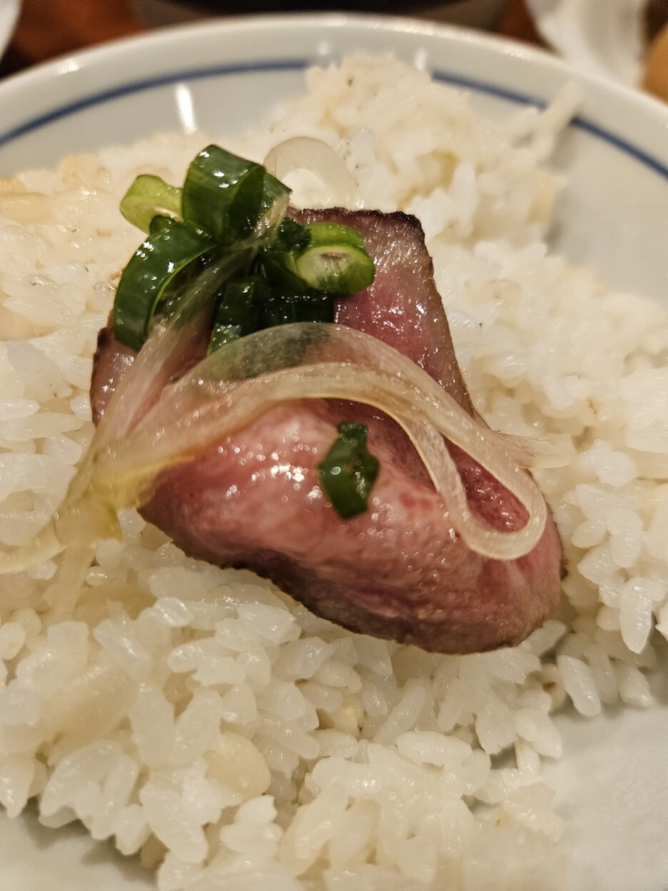 정식의 규탕구이를 먹었을 때, 고기 자체가 훌륭하기도 하지만, 부드럽게 너무 잘 구워진 것 같아 대단하다고 느꼈는데, 탕타타키는 너무하다. 규탕이 10점 만점에 10점이라면 타타키는 10점 만점에 15점이 넘는 점수를 주고 싶다. 비싸서 안 시킬까 했는데 큰일 날뻔했다. 앞서 규탕구이가 최고라고 했는데, 바로 순위가 바뀌었다. 탕타타키는 압도적이다.