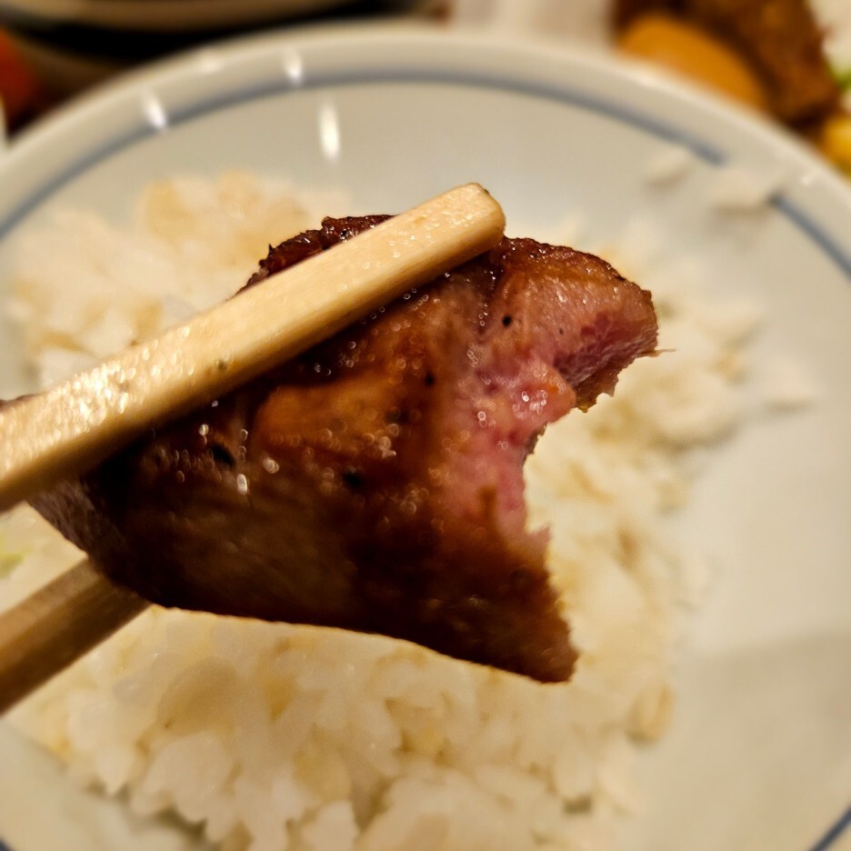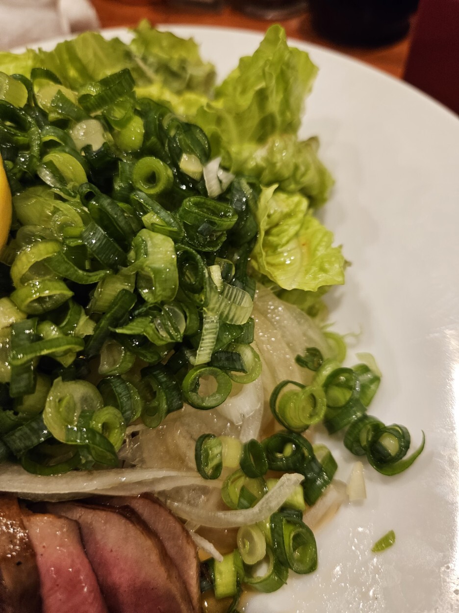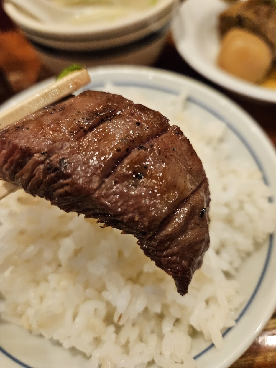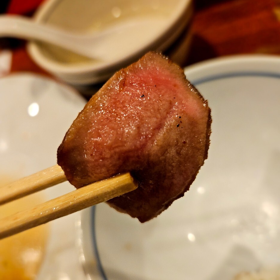 정식의 규탕구이를 먹었을 때, 고기 자체가 훌륭하기도 하지만, 부드럽게 너무 잘 구워진 것 같아 대단하다고 느꼈는데, 탕타타키는 너무하다. 규탕이 10점 만점에 10점이라면 타타키는 10점 만점에 15점이 넘는 점수를 주고 싶다. 비싸서 안 시킬까 했는데 큰일 날뻔했다. 앞서 규탕구이가 최고라고 했는데, 바로 순위가 바뀌었다. 탕타타키는 압도적이다.