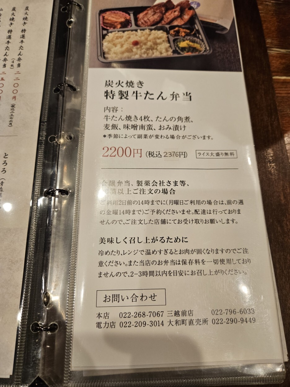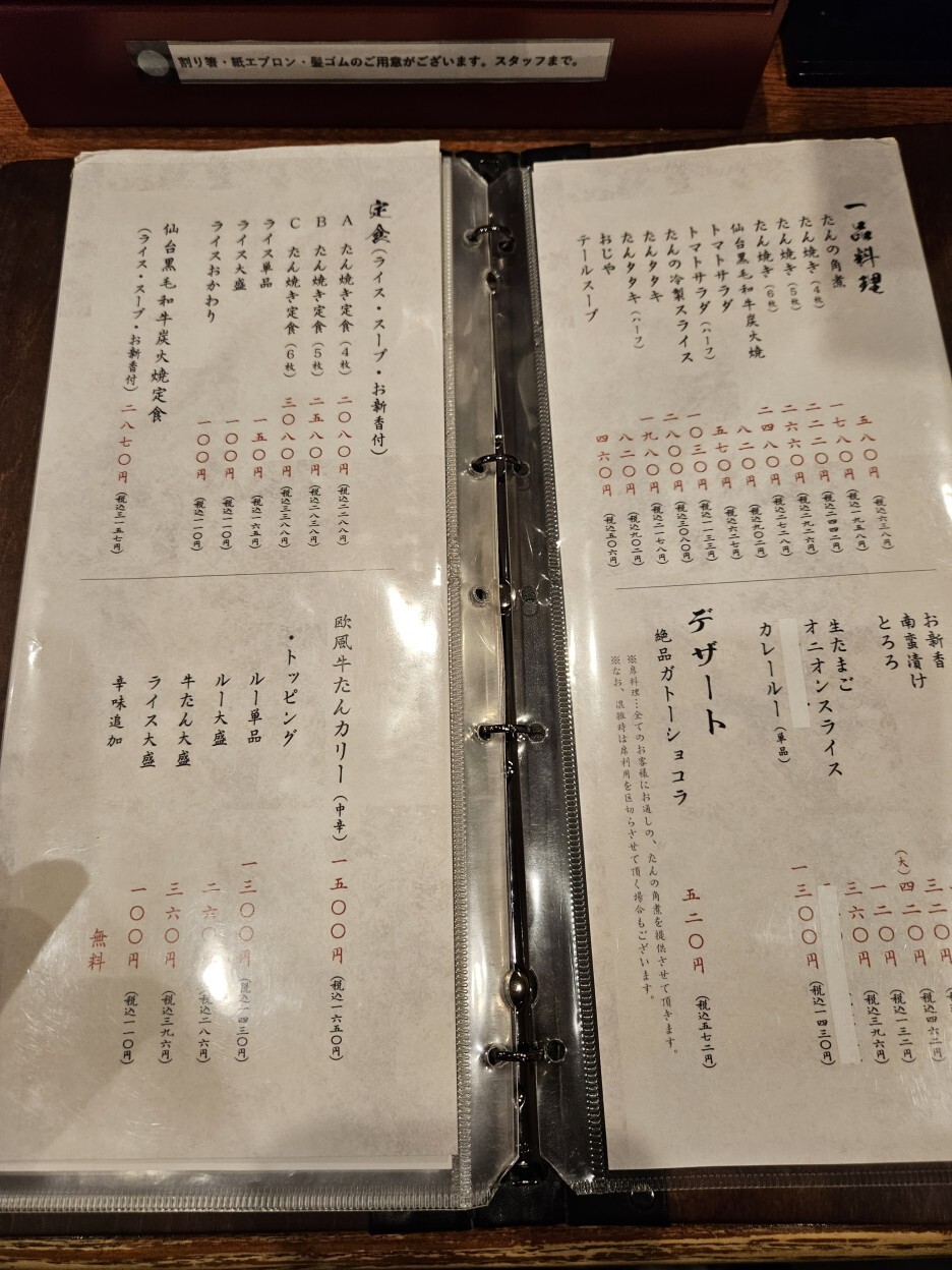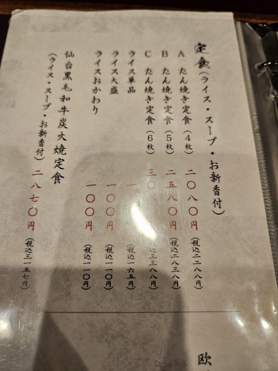 - 탕구이 정식 たん焼き定食(4枚): 2,080엔