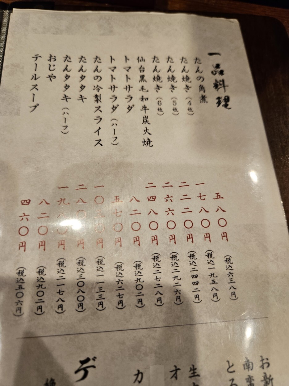 - 탕타타키(하프) たんタタキ(ハーフ): 1,980엔