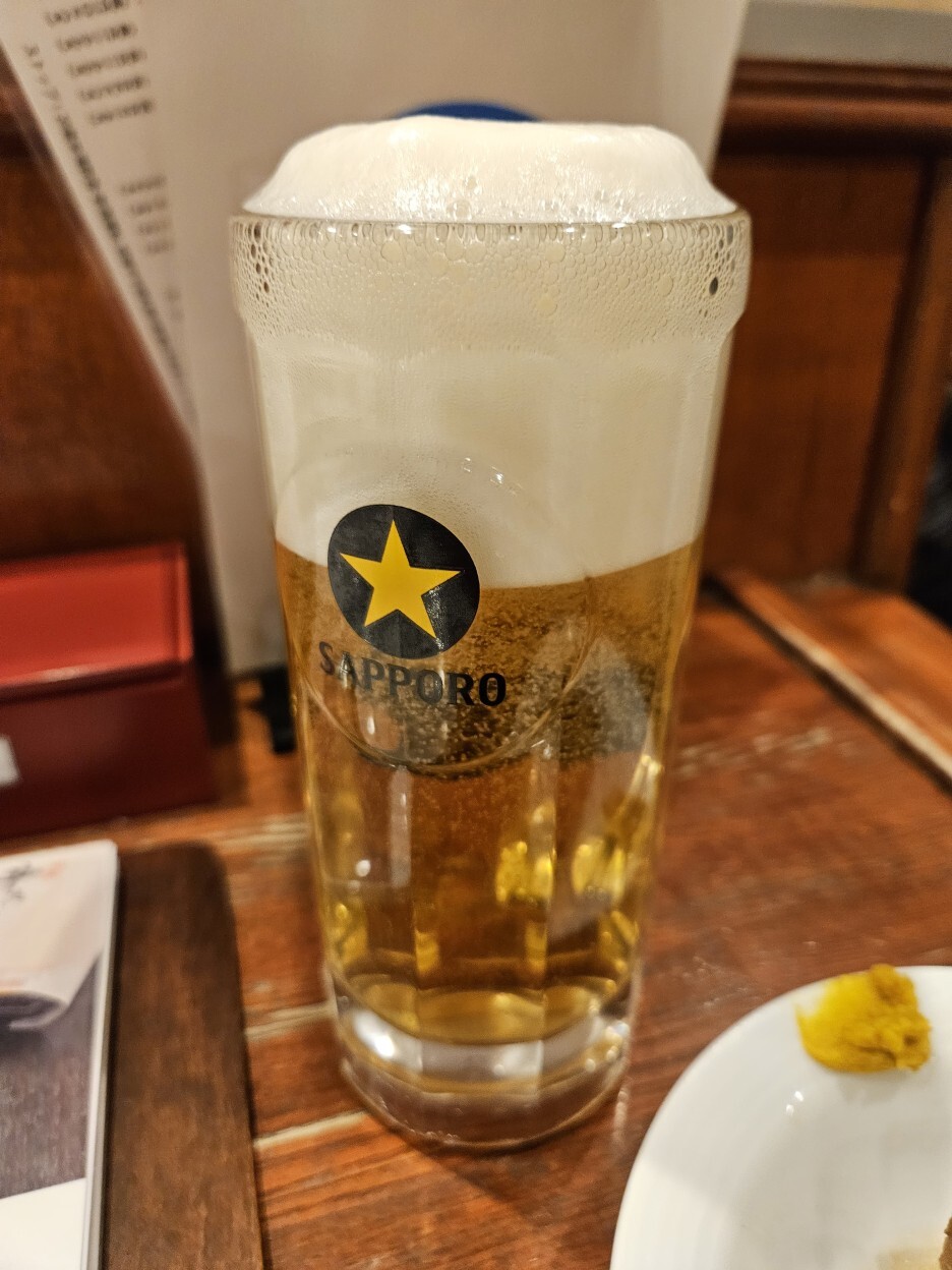 세금 포함 748엔이다. 비싸다. 700엔이 넘는 생맥주는 료칸 이외에는 접해본 적이 없다. サッポロ 生ビール 黒ラベル 樽生 삿포로 나마비루 쿠로라벨 타루나마.