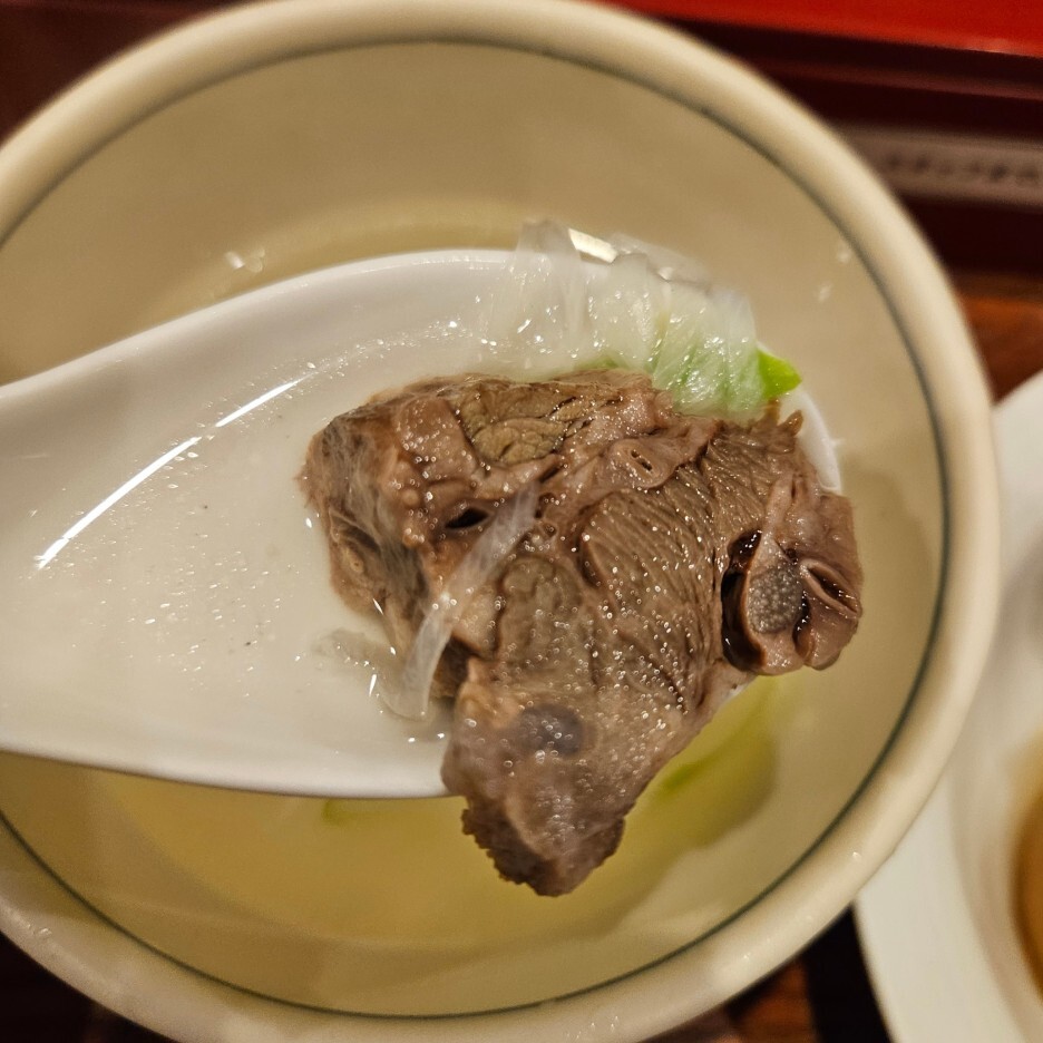 고기도 한점 들어가 있다. 아마도 소꼬리 인가 싶었는데, 먹어보니 카쿠니의 고기와 유사하다. 단지 양념이 안되어 있을 뿐.