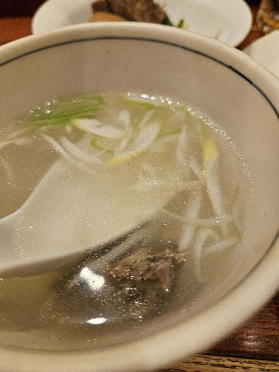 그리고 함께 나온 테일 수프. 우리나라도 치면 꼬리곰탕. 먹어보니 소금 베이스의 슴슴한 갈비탕 국물이다. 그냥 아무나 맛있게 먹을 수 있는 맛이다.