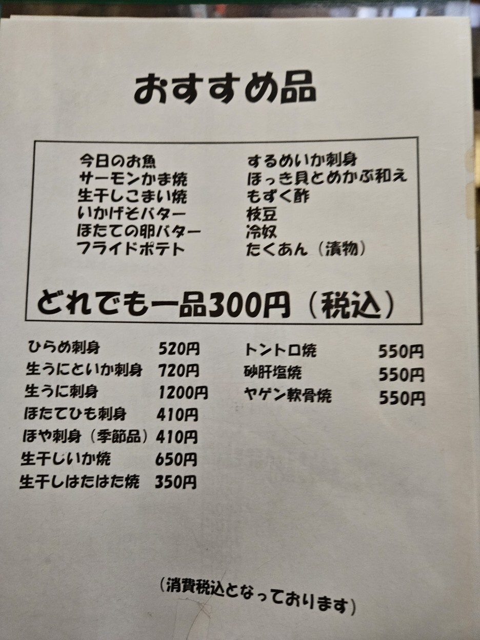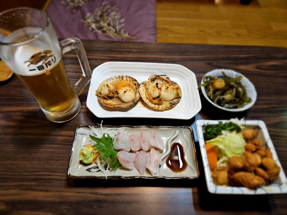 음식들이 대단하진 않다. 아오모리에서 유명한 가리비는 아래 식당에서도 다양한 요리를 하고 있어 훌륭한 맛을 이자카야에서도 맛볼 수 있다는 느낌. 다양한 술과 함께 음식을 먹는 것이 식당과 차이점일 듯.