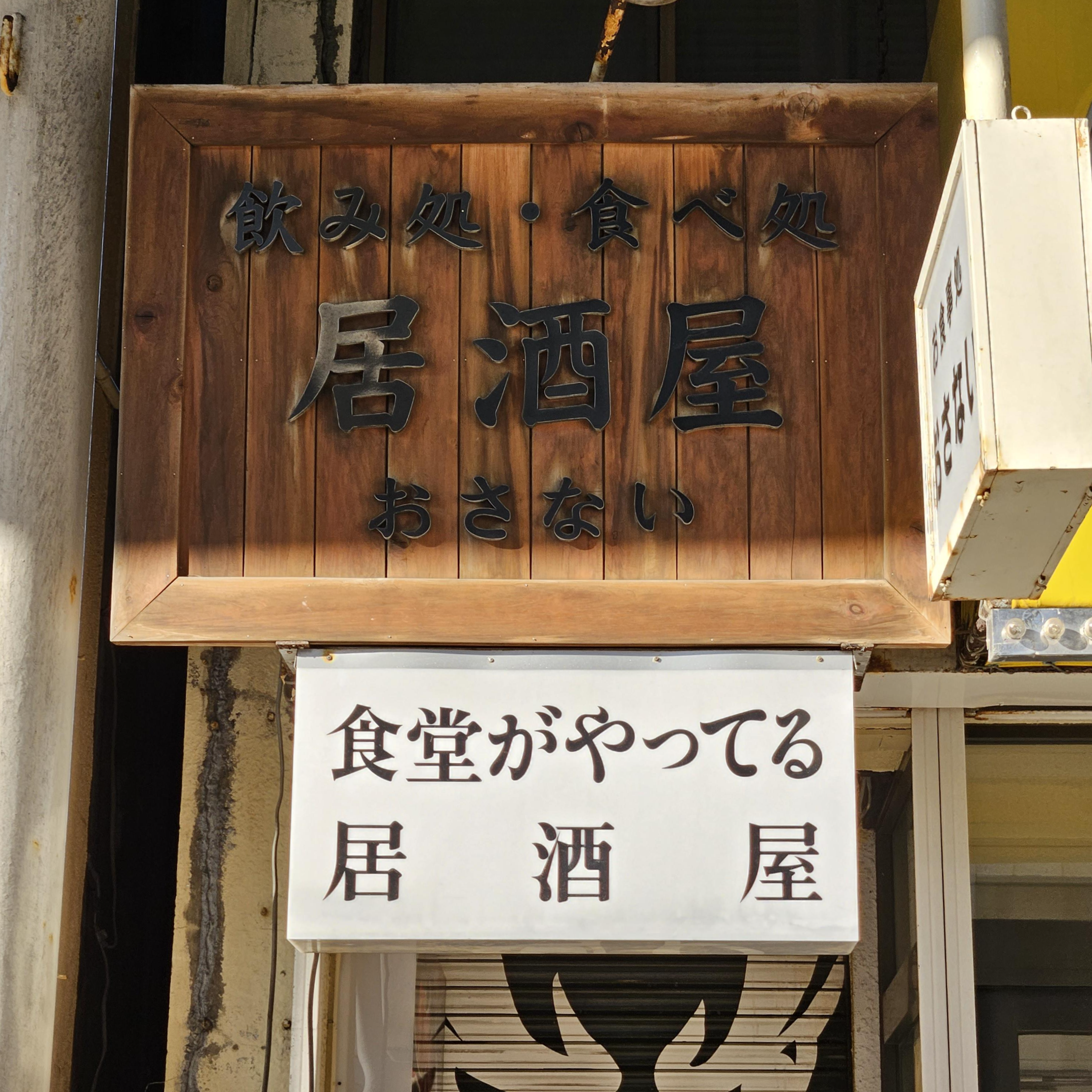 아오모리에서 유명한 식당인 오사나이 お食事処 おさない. 이곳에서 직접 운영하는 이자카야가 식당과 같은 건물 2층에 위치하고 있다. 영업시간은 딱 2시간. 오후 5시부터 7시까지이다. 노란색 간판이 식당이고, 식당 왼쪽 계단이 이자카야 입구이다.