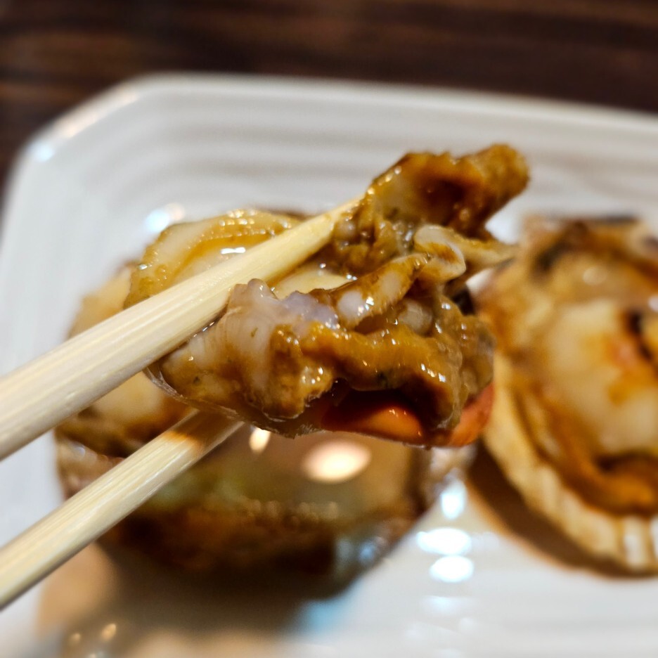 ホタテしょゆ焼 오늘의 메인 안주이다. 아오모리에서 유명한 가리비를 간장 양념으로 구워 낸 것.
