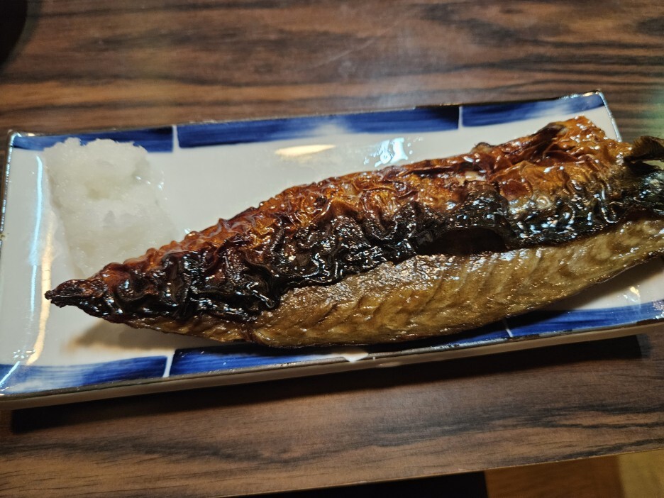 오늘의 추천 생선에 들어있던 고등어 소금구이. 그런데 가격이 적혀 있지 않아서 정확하게 얼마인지 알 수가 없다. 오토시 가격이 무료였다면, 510엔이었을 듯.
