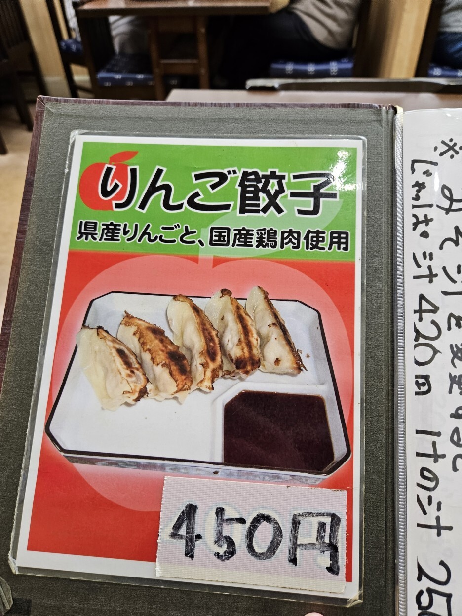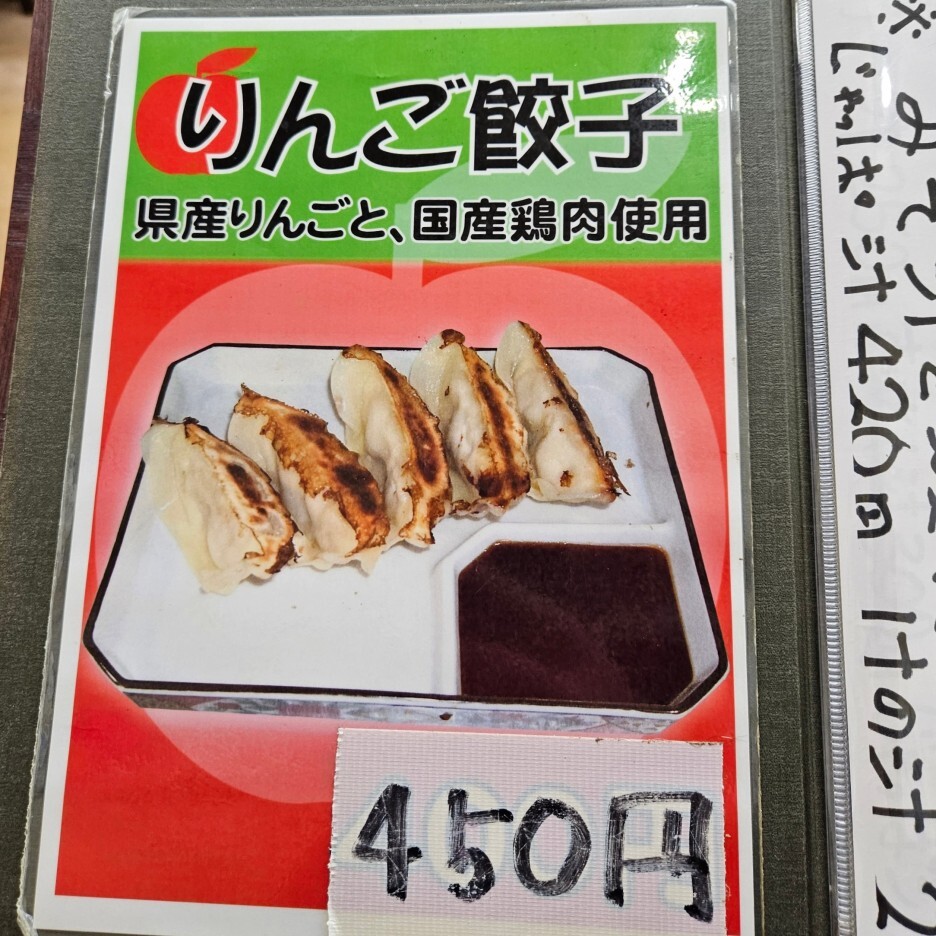 그 옆에 있던 조금은 황당한 메뉴. 사과 교자. 아오모리산 사과와 국내산 닭고기를 사용한다고 되어 있다. 과연 어떤 맛일지 궁금하기도 했지만, 여기에 이거 먹으러 온 것은 아니다.