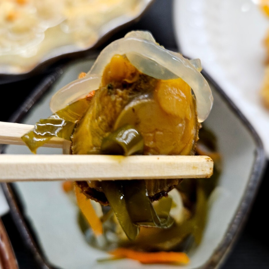 간장에 졸여진 가리비를 다시다 등과 함께 무친 녀석. 맛있다.