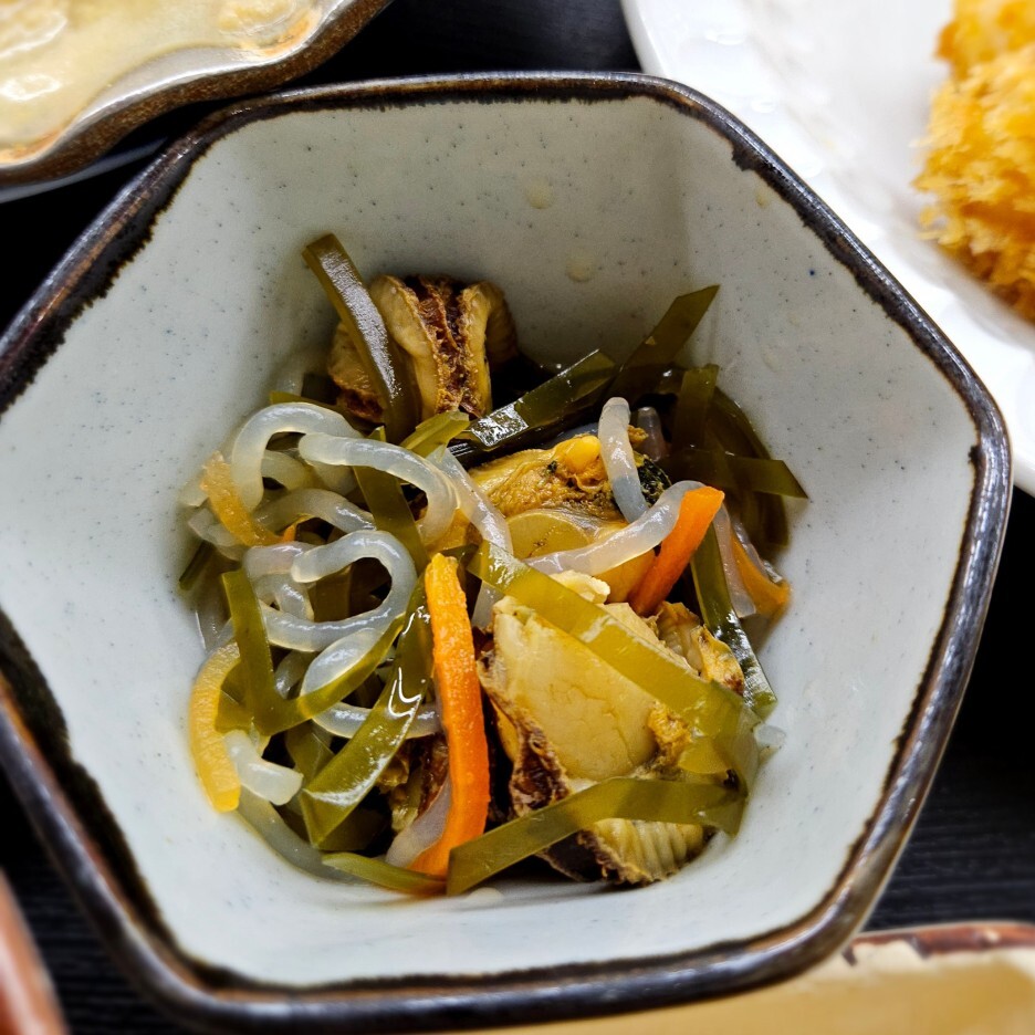 먼저, 가장 가운데이 있는 반찬류. 어제 2층 이자카에서 나왔던 오토시다. 이틀 연속 먹게 되다니...