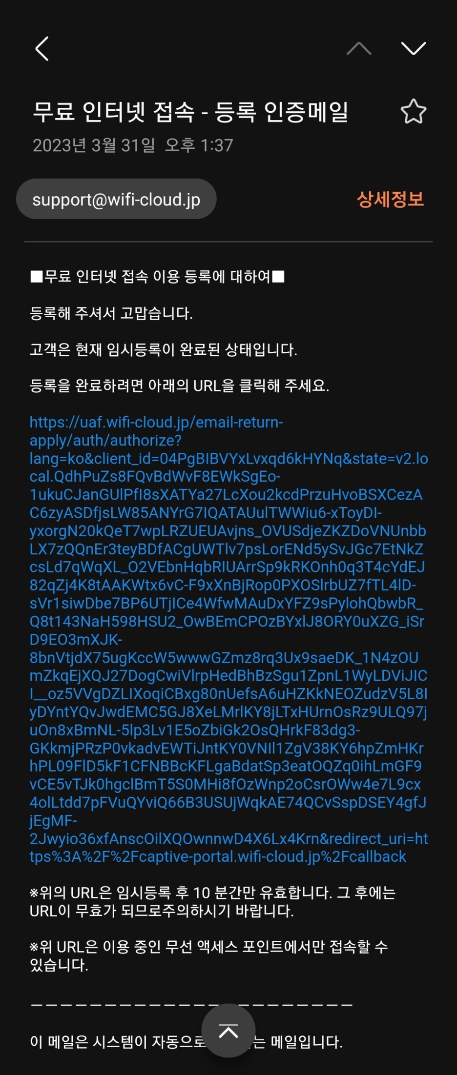 잠시 후 메일이 도착하고, 메일의 링크를 선택하면 완료된다.