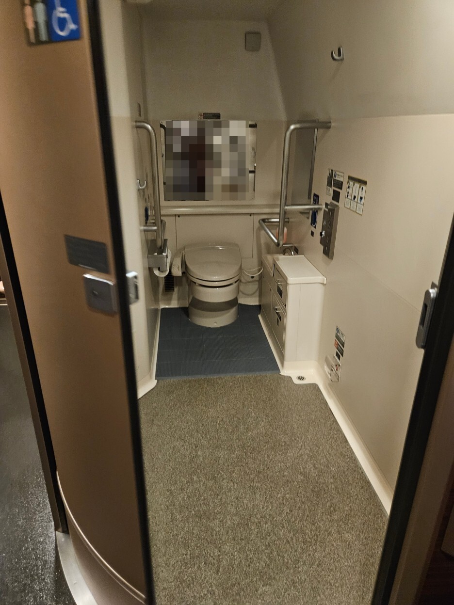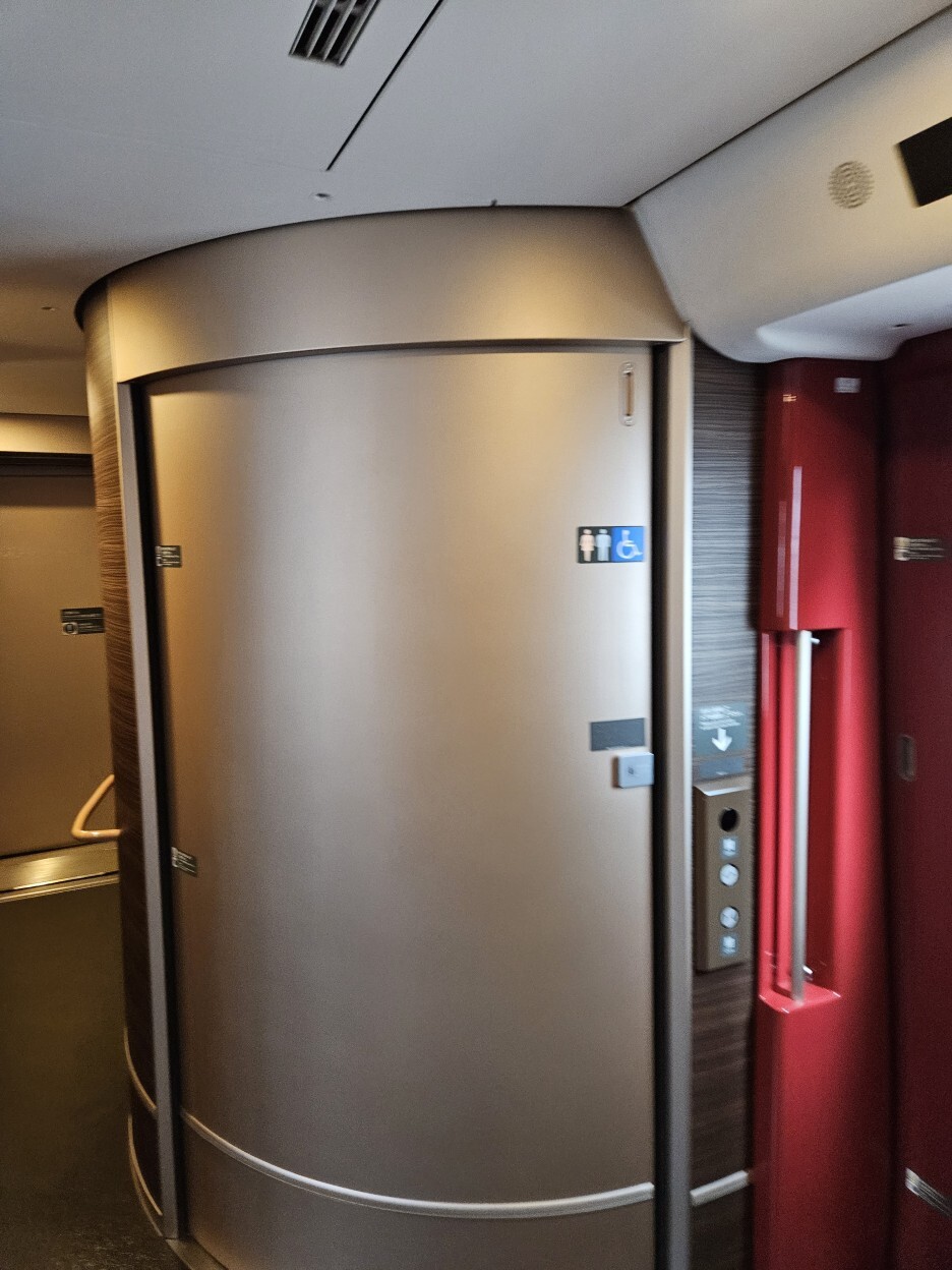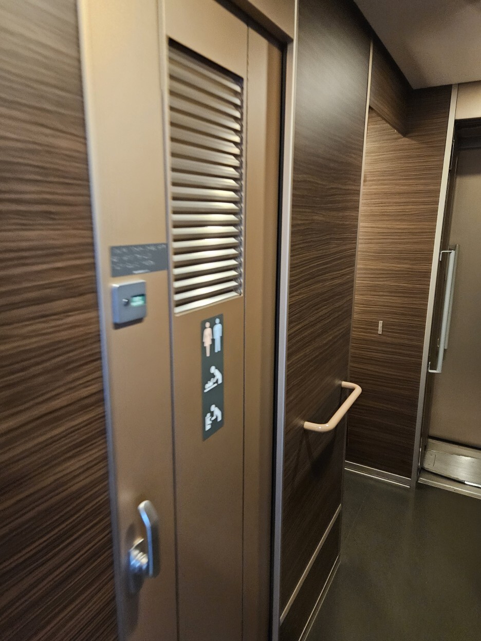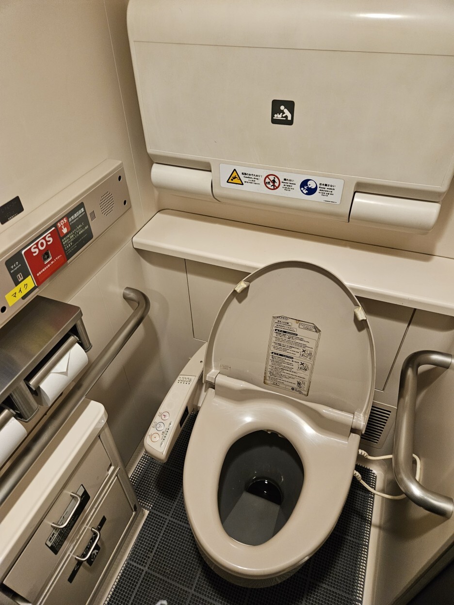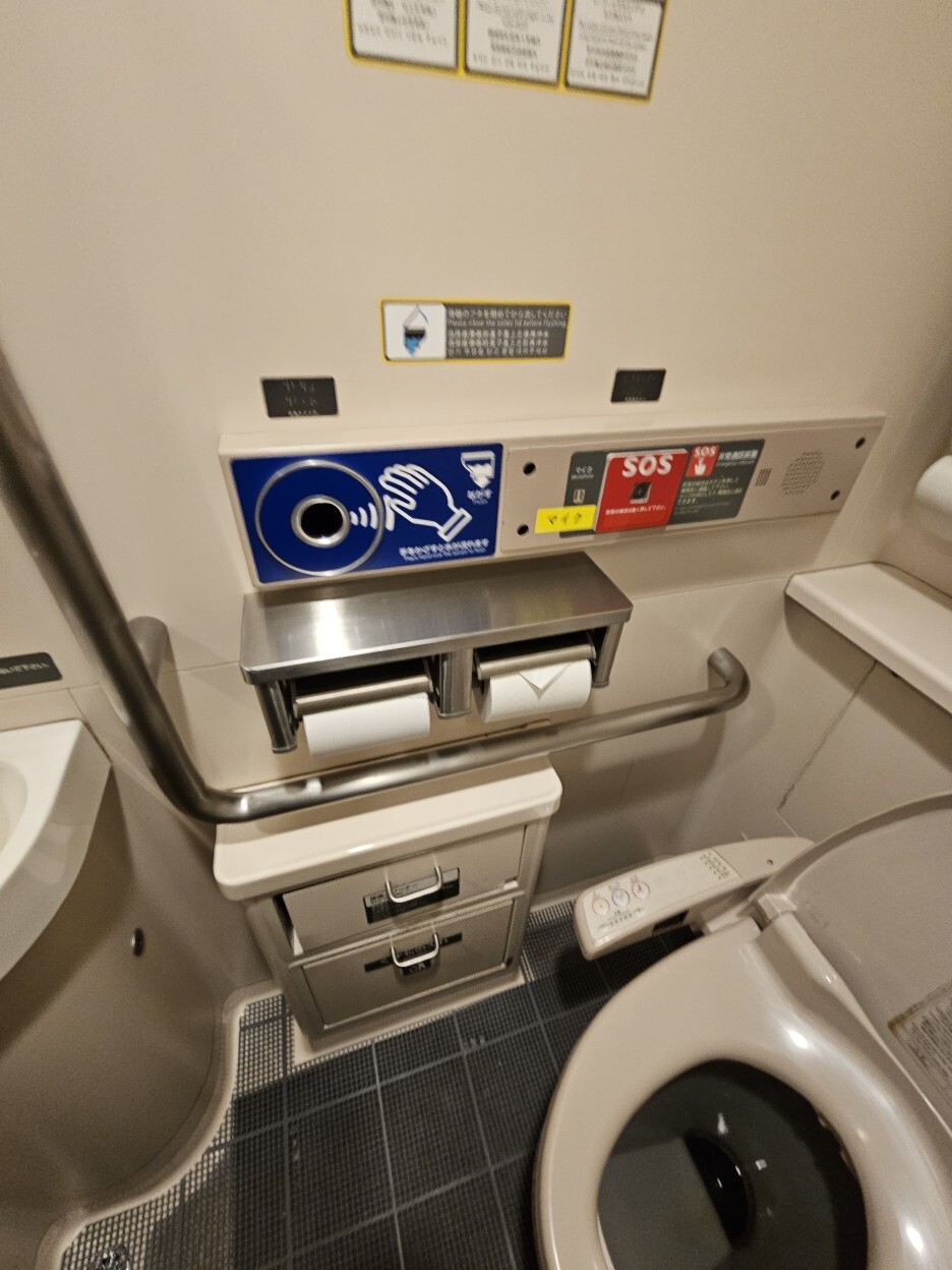 화장실 탐방. 한국 SRT에서도 가끔 볼 수 있는 커다란 장애인용 화장실이다.