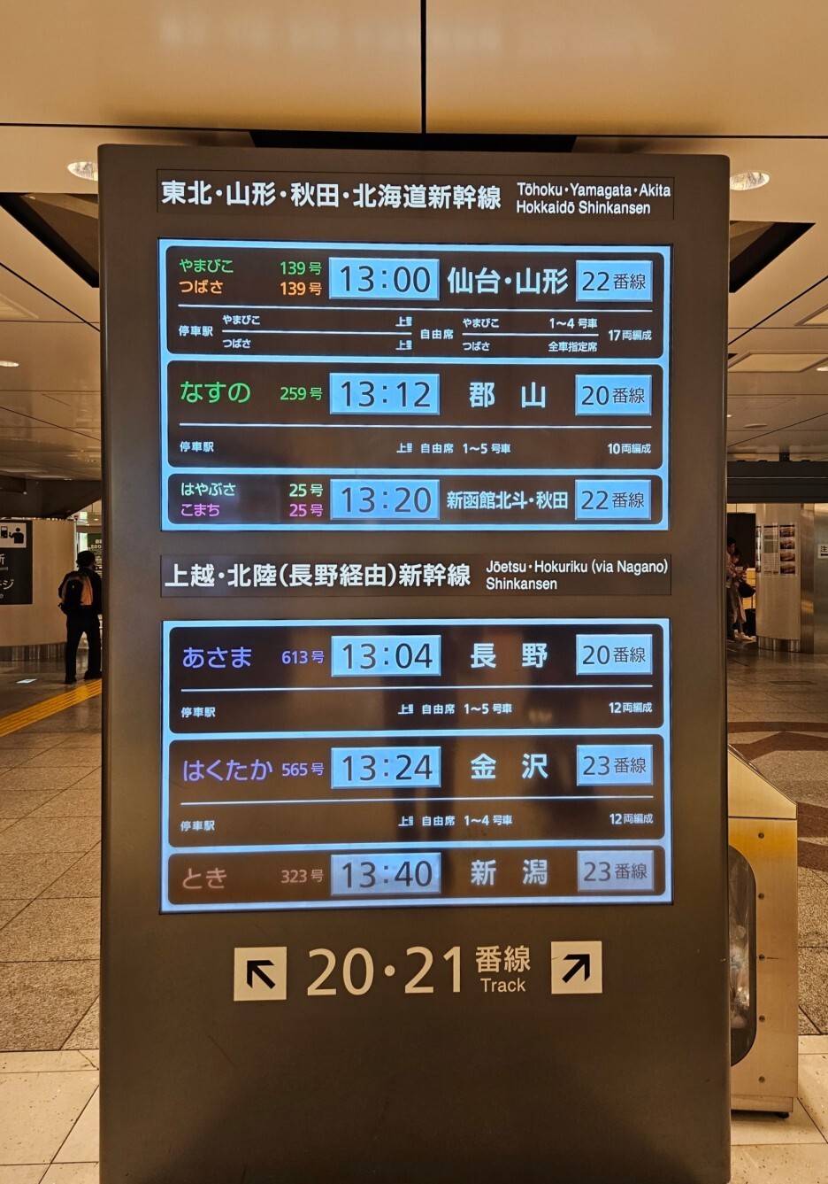 이제 토호쿠 방면으로 가는 신칸센 플랫폼으로 가보자.