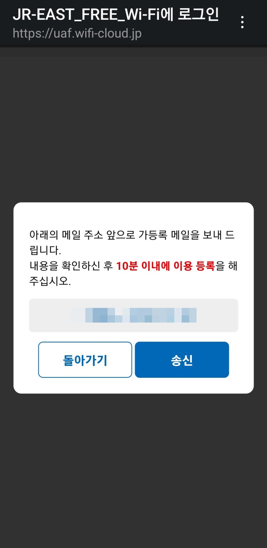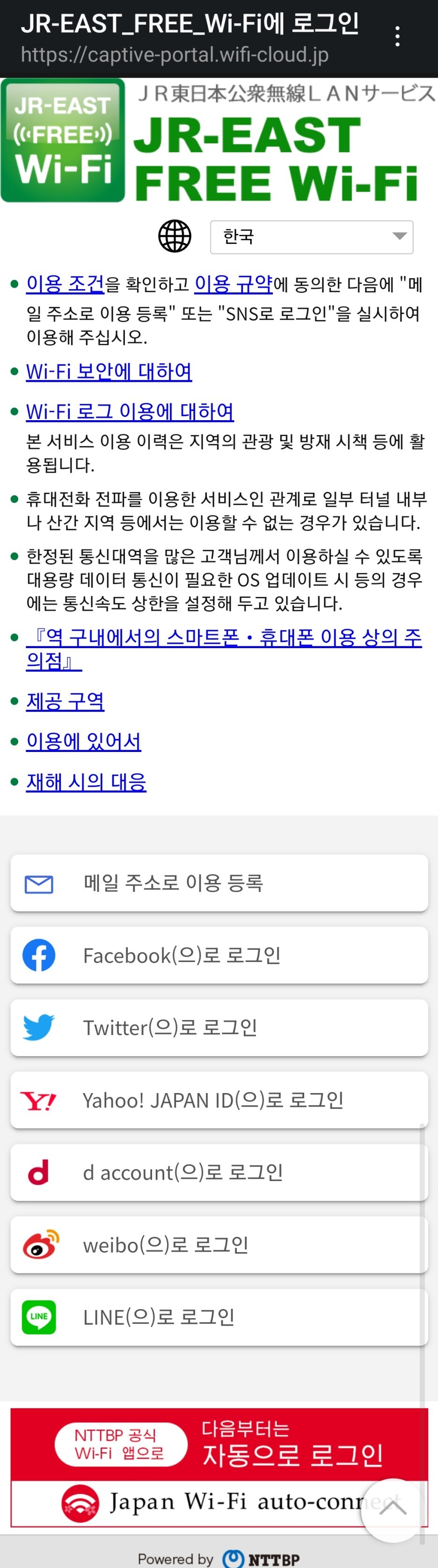 신칸센 무료 와이파이를 사용해 보았다. 전혀 어렵지 않다. 스마트폰의 와이파이에서 JR-EAST_FREE_Wi-Fi를 선택하면, 로그인 화면으로 넘어간다.