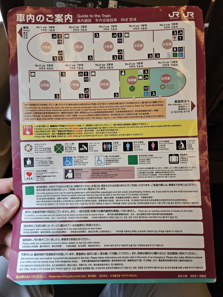 반대로, 도쿄역으로 향하는 경우에는 모리오카역에서 두대의 열차가 합쳐진다. 그리고 하나의 열차로 도쿄역까지 운행된다. 모리오카역에서 도쿄로 오는 날 두 열차가 합체하는 장면을 직접 확인했는데, 그건 다른 포스팅에서 동영상과 함께 보여드리도록 하겠다. 재미있는 경험이었다.