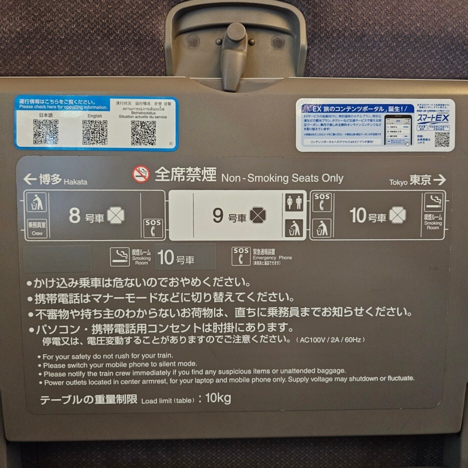 역시나 2열 좌석이지만 오늘도 혼자 차지한 자리. 또한 N700계 열차의 가장 좋은 점은 흡연실이 있다는 점.