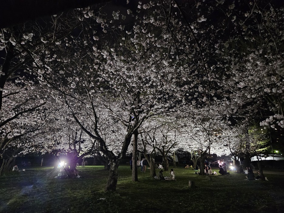 공원 안을 걷다 보니, 환하게 조명이 밝혀진 곳이 있어 가보았다. 많은 일본 현지인들이 꽃놀이를 하고 있는 모습이었다. 음식을 가져와서 술과 함께 즐거운 시간을 보내고 있는 모습이 좋아 보였다.