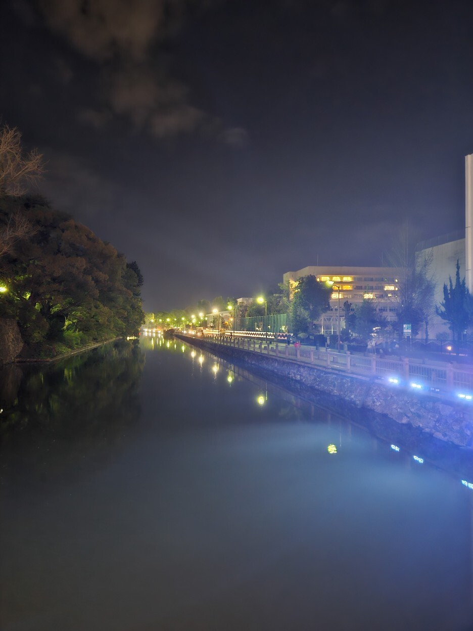 해자 안쪽의 성벽 쪽으로도 라이트업이 되고 있는 상황. 붉은빛은 그다지 확 댕기는 모습은 아니다.