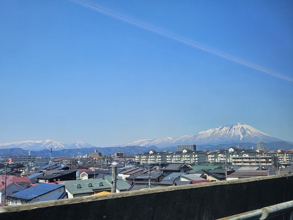 탑승한지 얼마 지나지 않아, 창밖으로 엄청나게 큰 산이 하나 보인다. 나중에 찾아봤지만 어떤산인지는 알아내지 못했다. 4월 1일임에도 역시 북쪽이라 그런지 눈이 많이 쌓여 있는 모습이다.