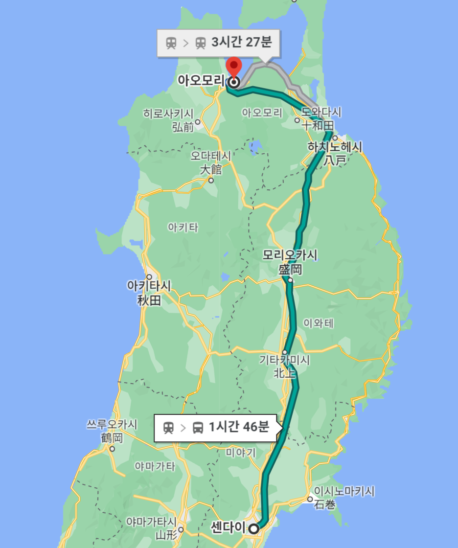 센다이에서의 먹부림 하루짜리 여행을 마치고, 오늘은 아오모리까지 이동한다. 아오모리까지는 365.8km의 꽤 장거리로, 1시간33분이 소요된다.