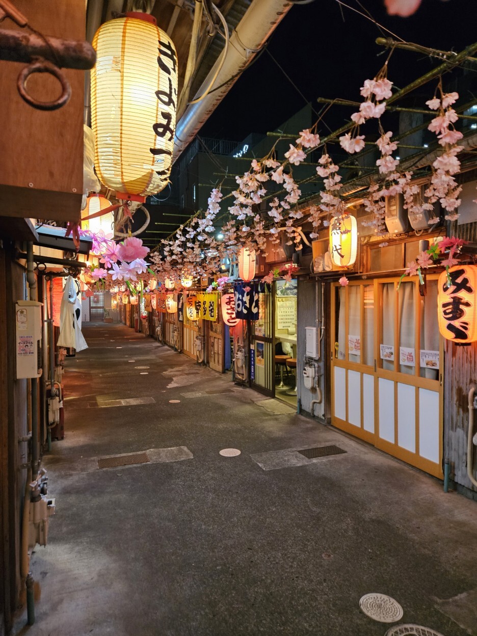 2차 세계대전 이후 일대에 즐비했던 오뎅 포장마차가 1957년(쇼와32년) 시가지 재개발에 따라 철거되면서, 그 자리에 포장마차가 모여 오뎅 거리로 남게 되었다고 한다. 나는 이 거리에 맨 끝에 위치한 '낭만'이라는 가게로 들어가서 먹기로 했다.
