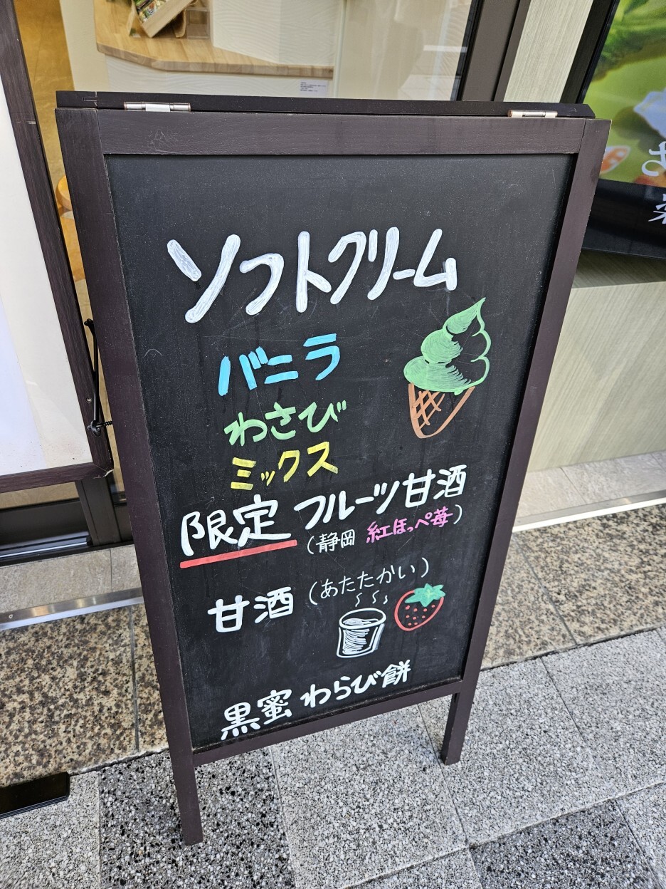 아타미에서 신칸센을 타고 시즈오카로 돌아왔다. 아타미에서 좀 걷고 했으니, 간식을 하나 먹기로 한다. 바로 시즈오카의 명물 와사비로 만든 소프트크림.