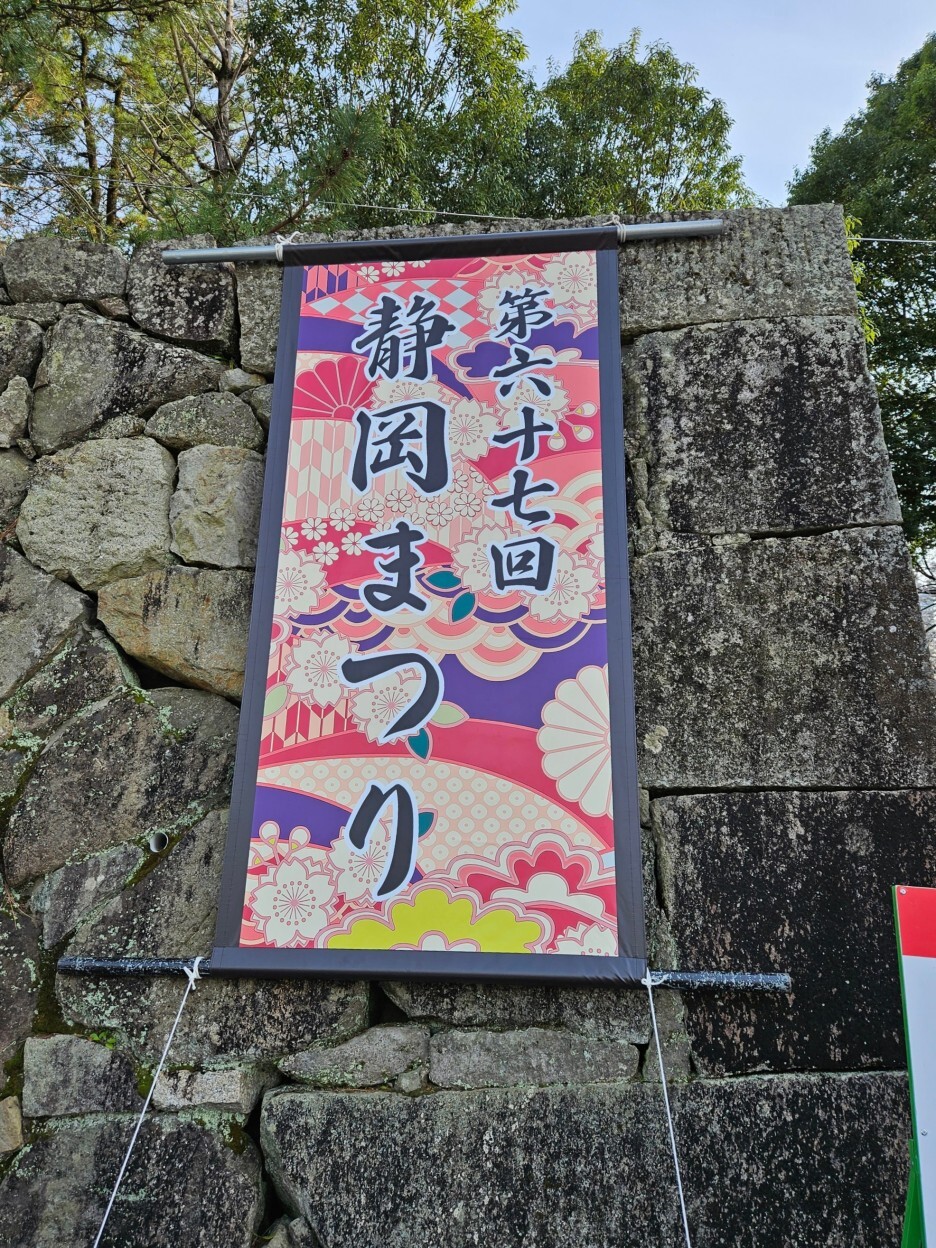 67회 시즈오카 마츠리를 알리는 플래카드. 보지 못하고 떠나는 게 아쉬운 상황.
