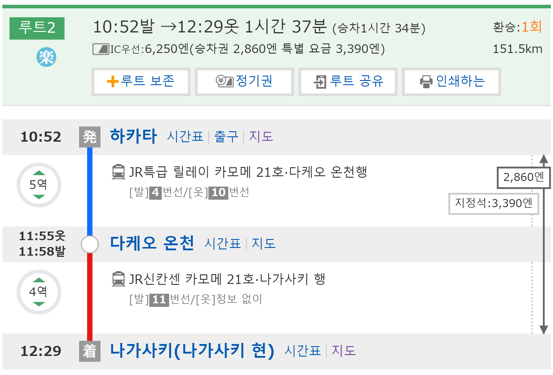 JR 패스 그린차로 나가사키 간다
