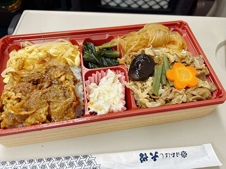 인기 메뉴의 양대 산맥인 '스키야키'와 '스테이크'를 한 번에 즐길 수 있는, 그야말로 소고기를 제대로 즐길 수 있는 에키벤이다. 가열 기능이 있는 타입으로 따뜻한 상태로 먹을 수 있다. 양념이 안 되어 있는 고기류의 에키벤은 가열 기능이 있는 것이 확실히 맛이 좋을 듯하다. 고기를 좋아하는 사람에게는 아주 딱 좋은 에키벤일 듯하다.