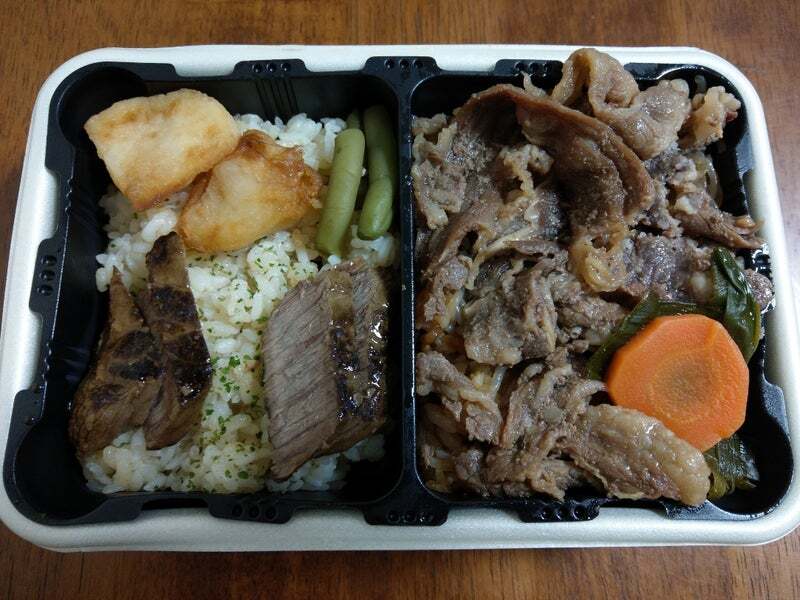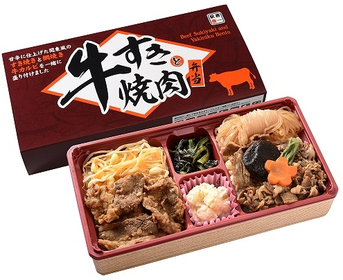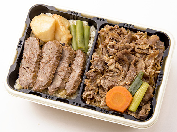 - 「牛すきと牛焼肉弁当」 1,300円 - 日本ばし大増