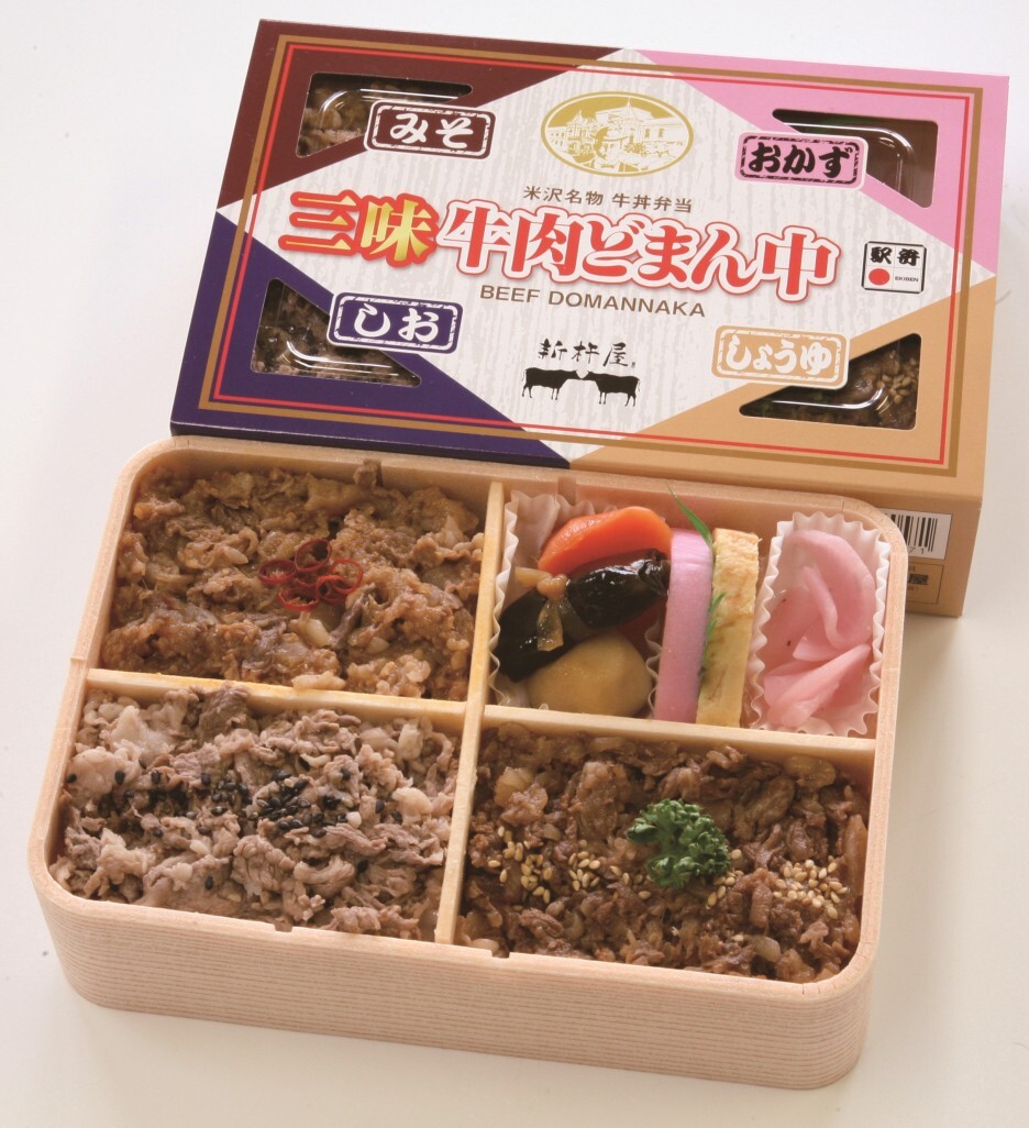 1위는 1992년 야마가타 신칸센 개통에 맞춰 개발된 이래 부동의 인기를 누리고 있는 '규니쿠 도만나카, 소고기 한복판'이 차지했다! 야마가타현산 쌀 '도만나카'를 푹 익혀 특제 양념으로 맛을 낸 소고기 소보로와 소고기 조림을 얹은 규동 스타일의 에키벤이다. 스키야, 요시노야 같은 규동 체인점과 비슷하지 않을까 싶기도 하지만, 판매량 1위이고, 가격 차이도 많이 나니 분명 훨씬 나은 맛이리라.