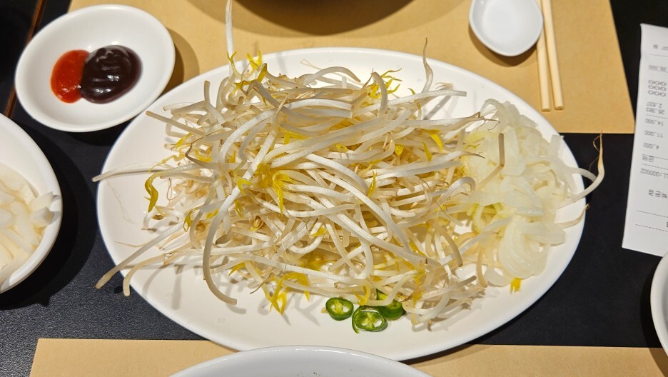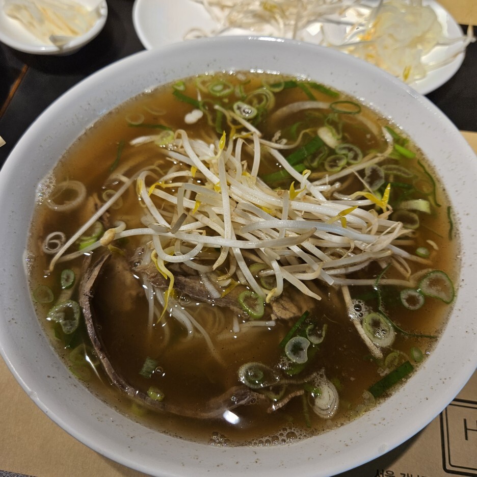 처음 방문한 곳이라 어떤 쌀국수가 좋을지 몰라, 다양한 부위의 고기가 들어가 있는 것을 시켰다. 먼저 나온 숙주나물과 양파절임. 추가로 리필을 요청하더라도 별문제 없이 해주셨다.