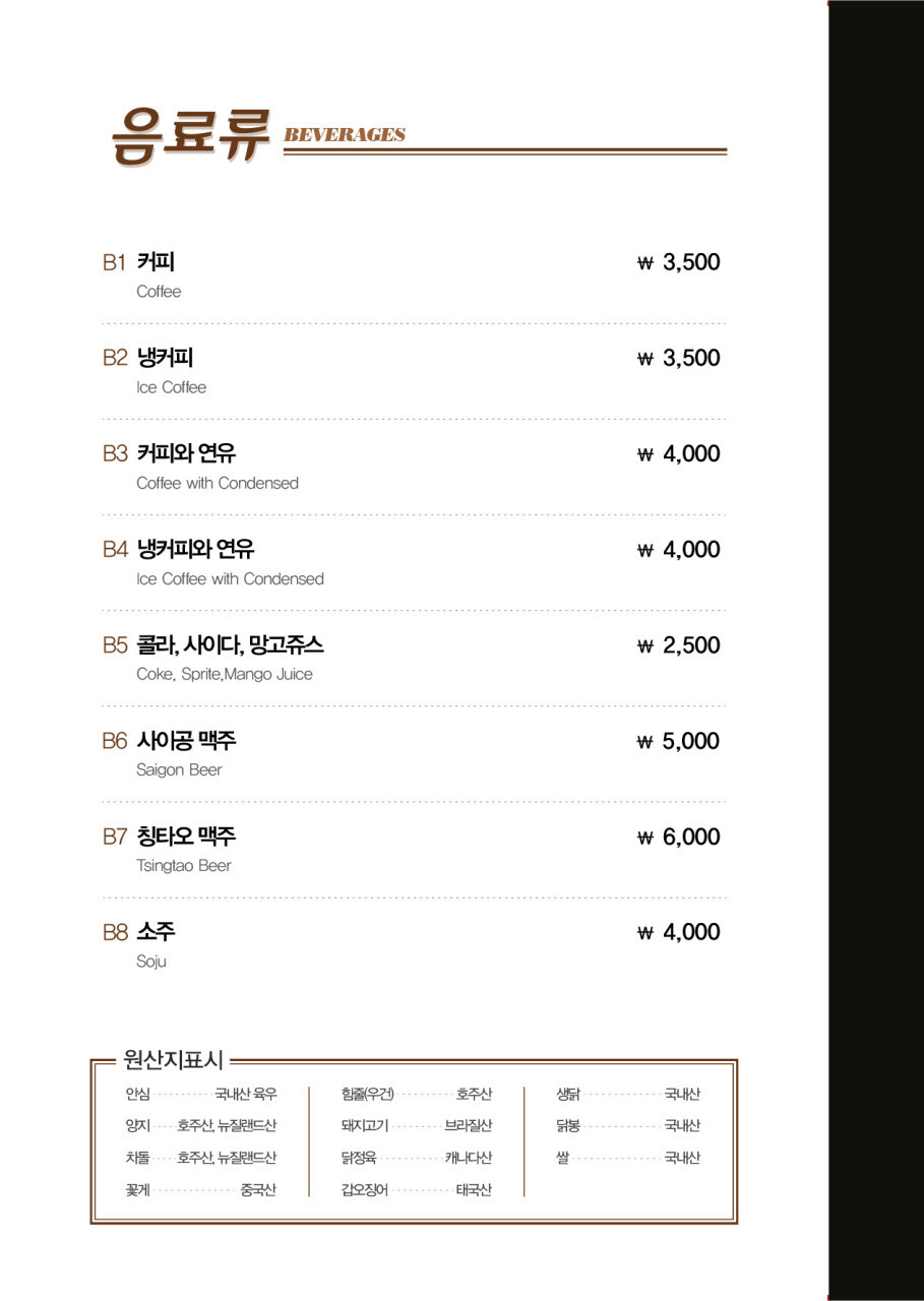 메뉴 일람