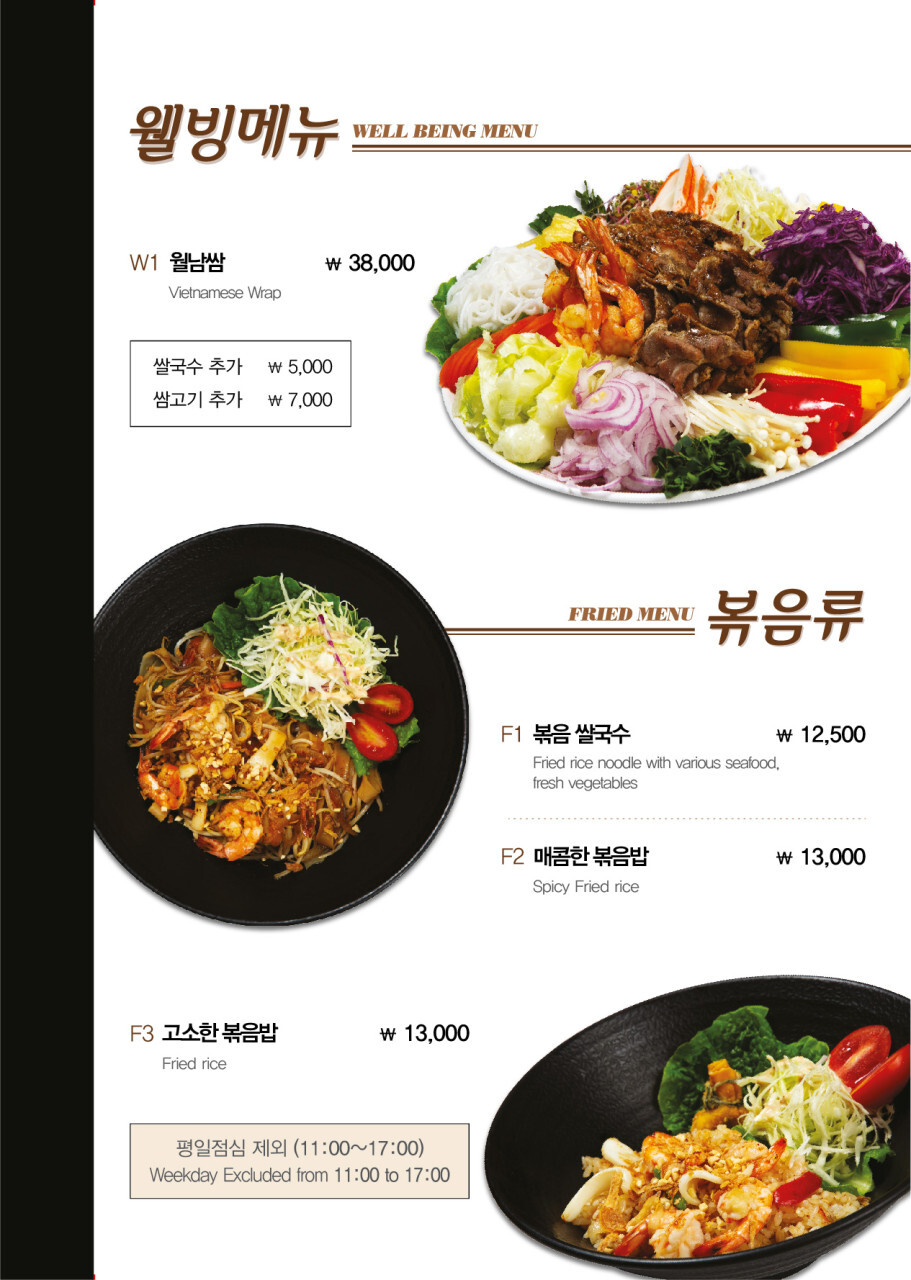 네이버에 올라와 있는 메뉴이다. 하지만, 이 메뉴 사진에서 가격 인상이 있었던 듯하다. 포스팅 본문의 키오스크 사진을 보시는 것이 더 정확하다. 쌀국수의 경우, 각 500원~1000원 인상이 되었다.