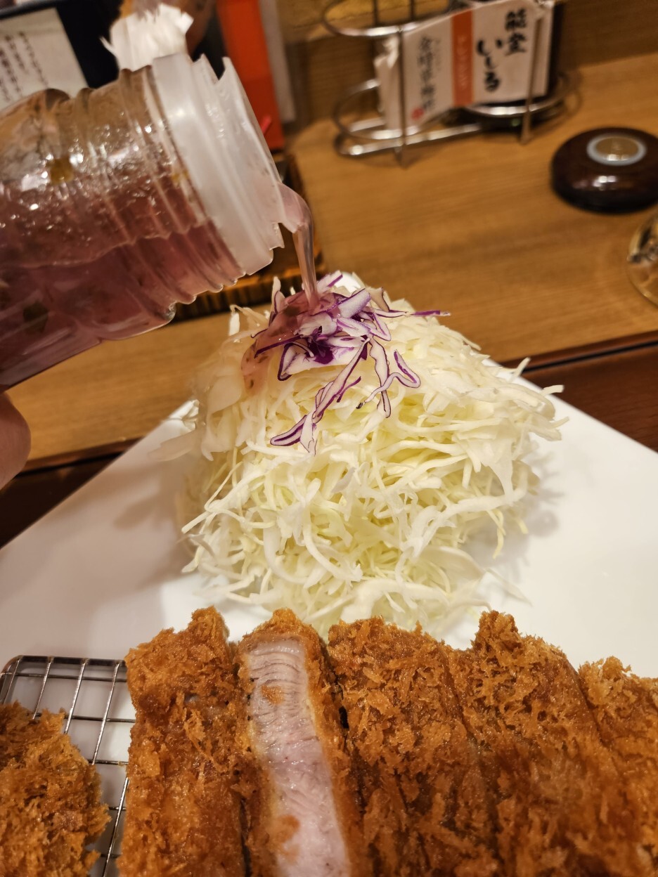돈가츠에 함께 나오는 양배추에 뿌려 먹는 소스가 두가지이다.