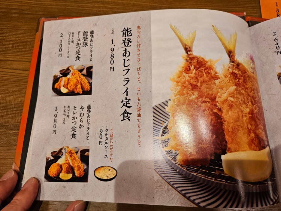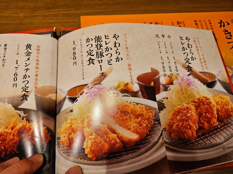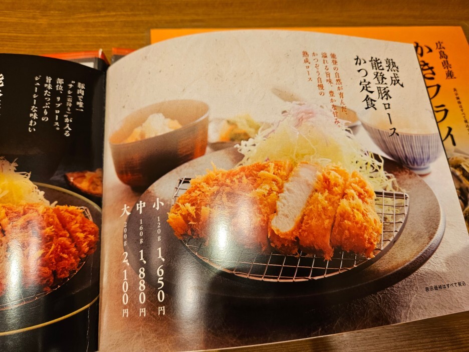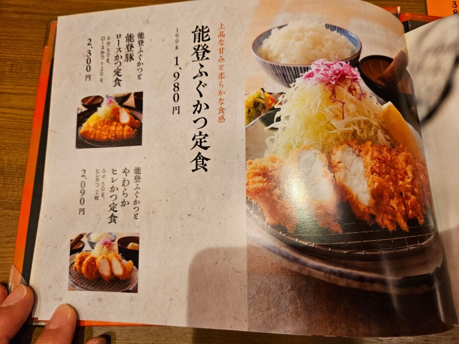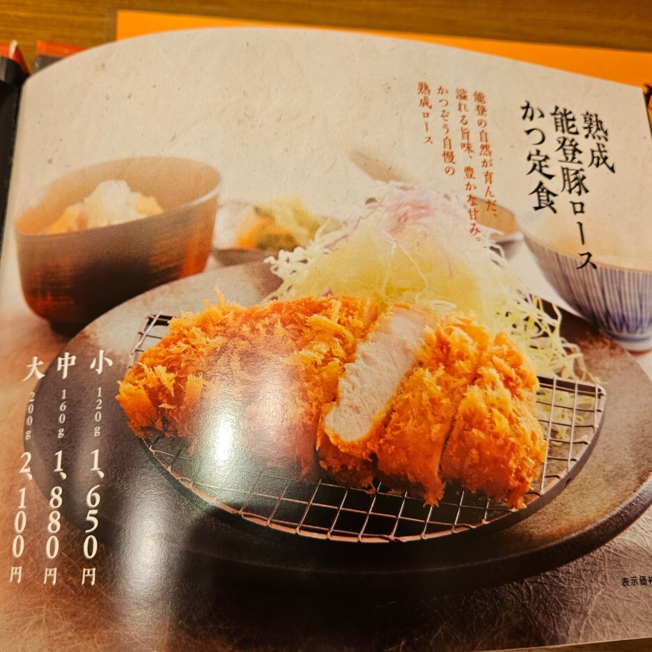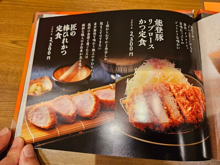 - 숙성 노토부타 로스카츠 정식: 2300엔 (세금포함)