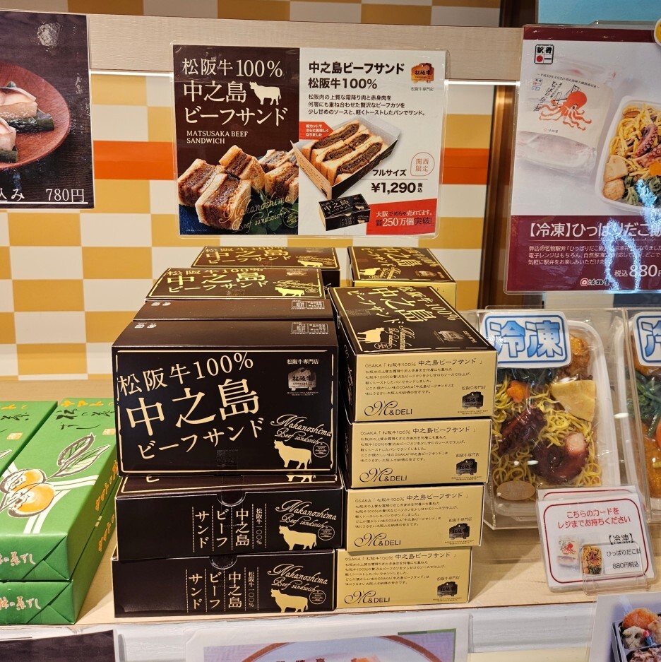 내가 선택한 도시락은 마츠자카규 100%의 비프샌드위치. 일본스러운 도시락을 구매하고자 했는데, 광고 문구에 낚였다. 오사카에서 누적 250만 개 이상 판매가 되었고, 마츠자카규 100%라는 문구에 정말 넘어가 버린 것.