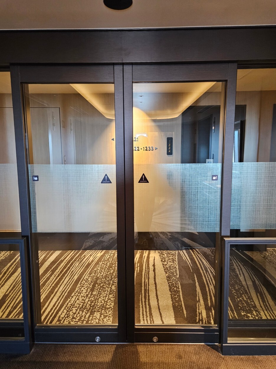엘리베이터를 내리면, 또 다른 문이 객실 복도를 막고 있다. 보안이 철저한 편.