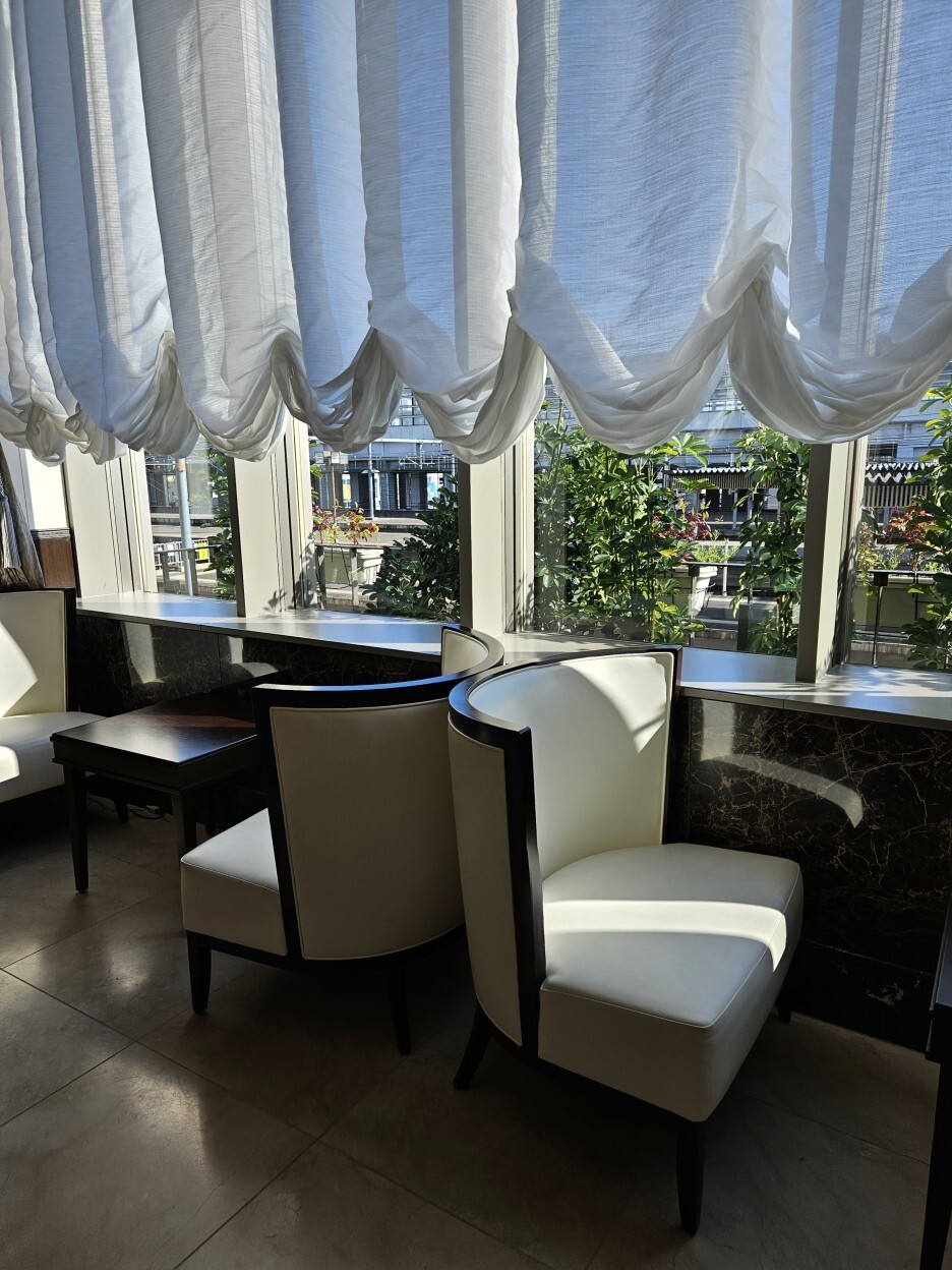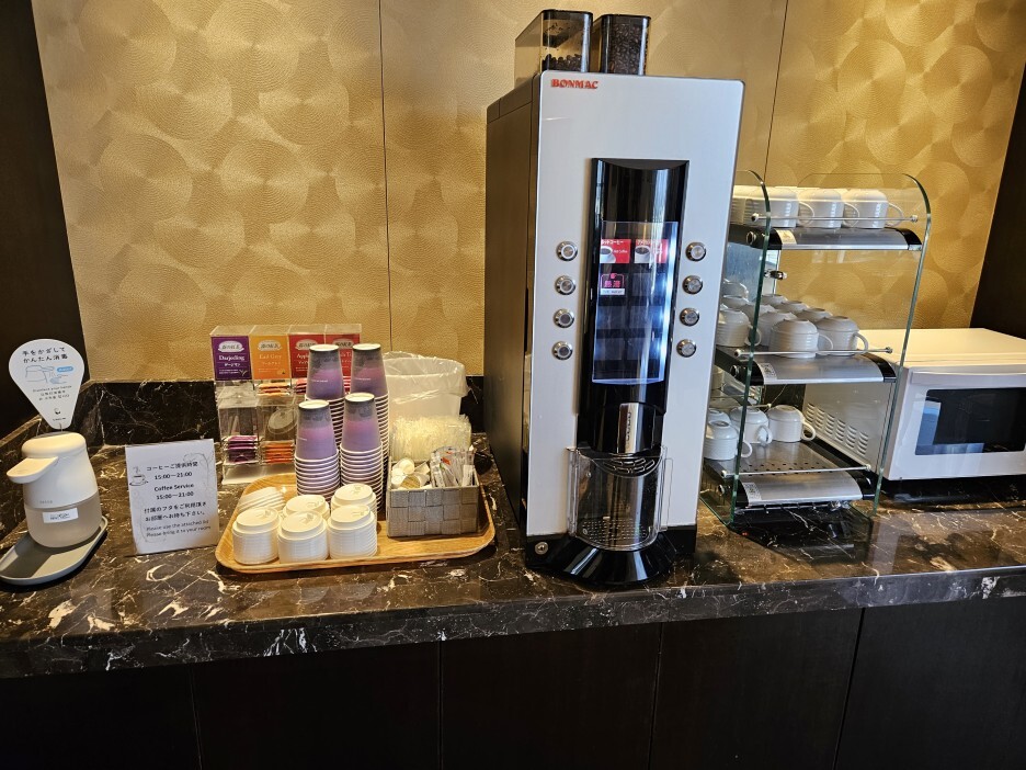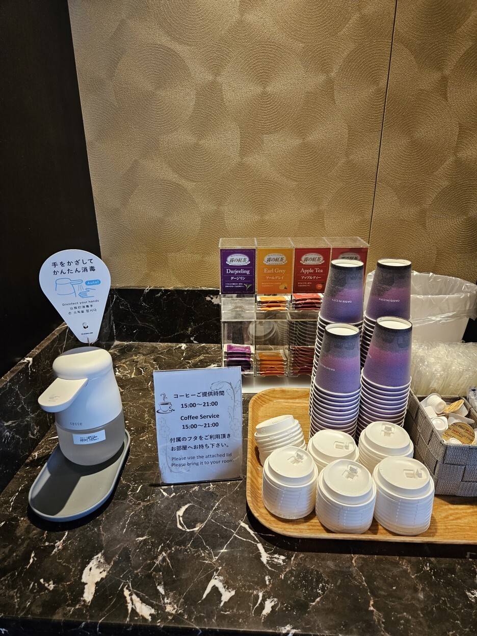 3층 호텔 프런트 바로 뒤쪽에 쉴 수 있는 공간이 있다. 바로 여기에서 웰컴 커피와 차를 마실 수 있다.