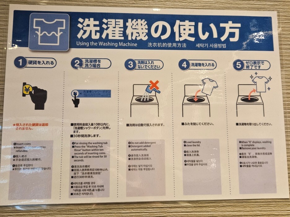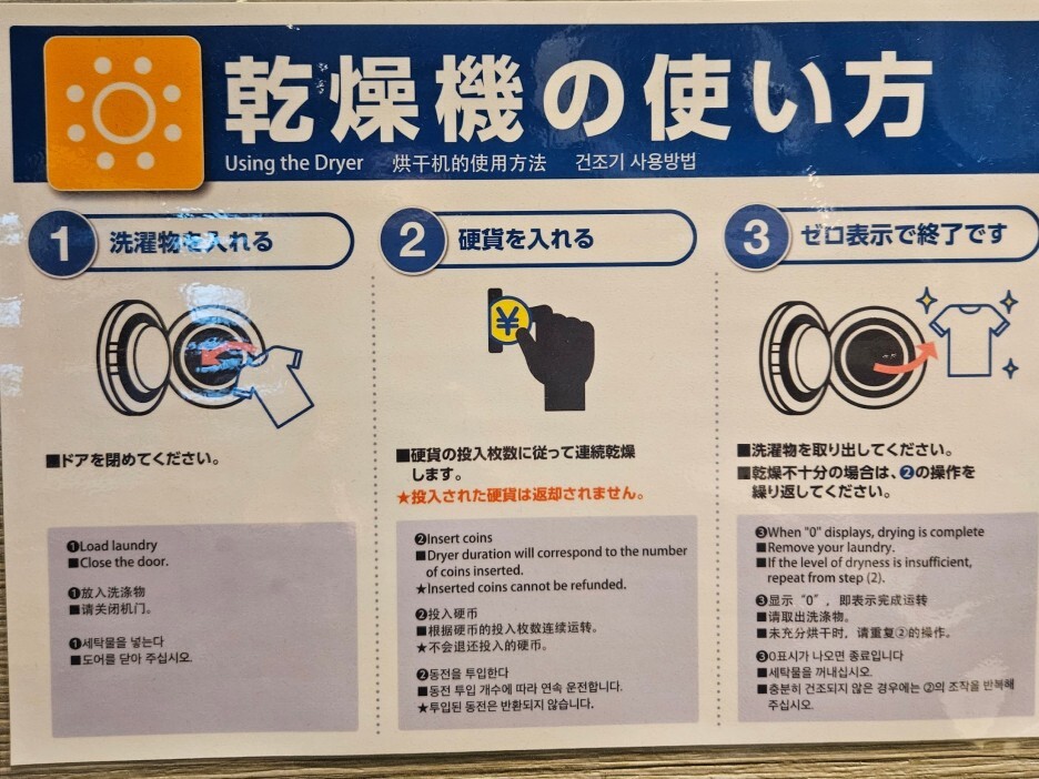 코인세탁기는 통돌이 세탁기. 실제 사용해 본 경험에 의하면 통돌이 세탁기가 드럼 세탁기 보다 훨씬 사용하기가 편리했었다. 여기는 300엔.