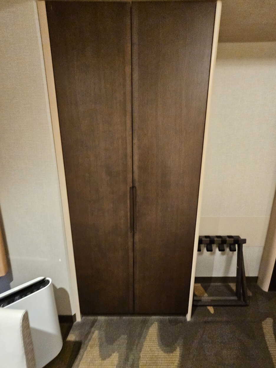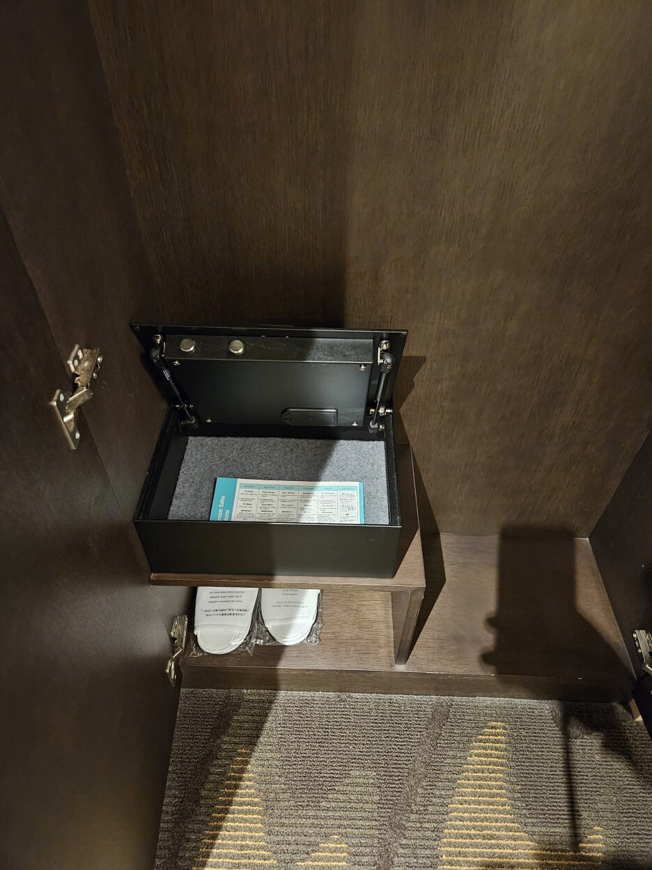 옷장 안에는 실내 슬리퍼와 금고도 있다.